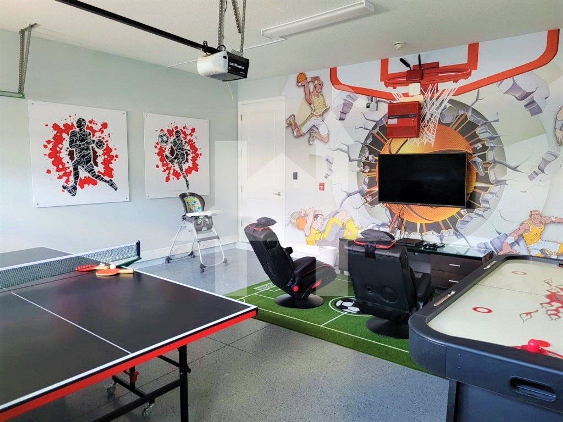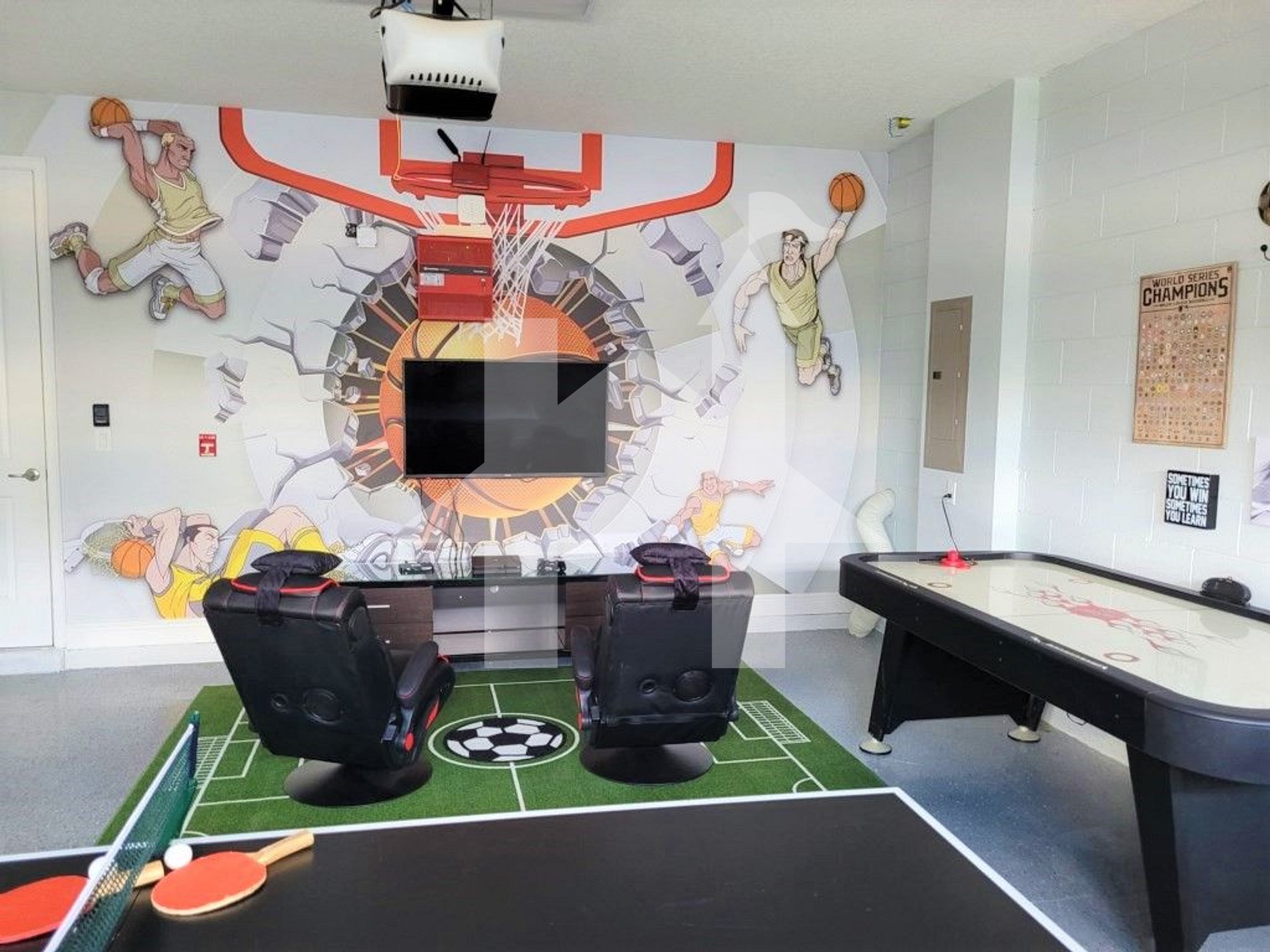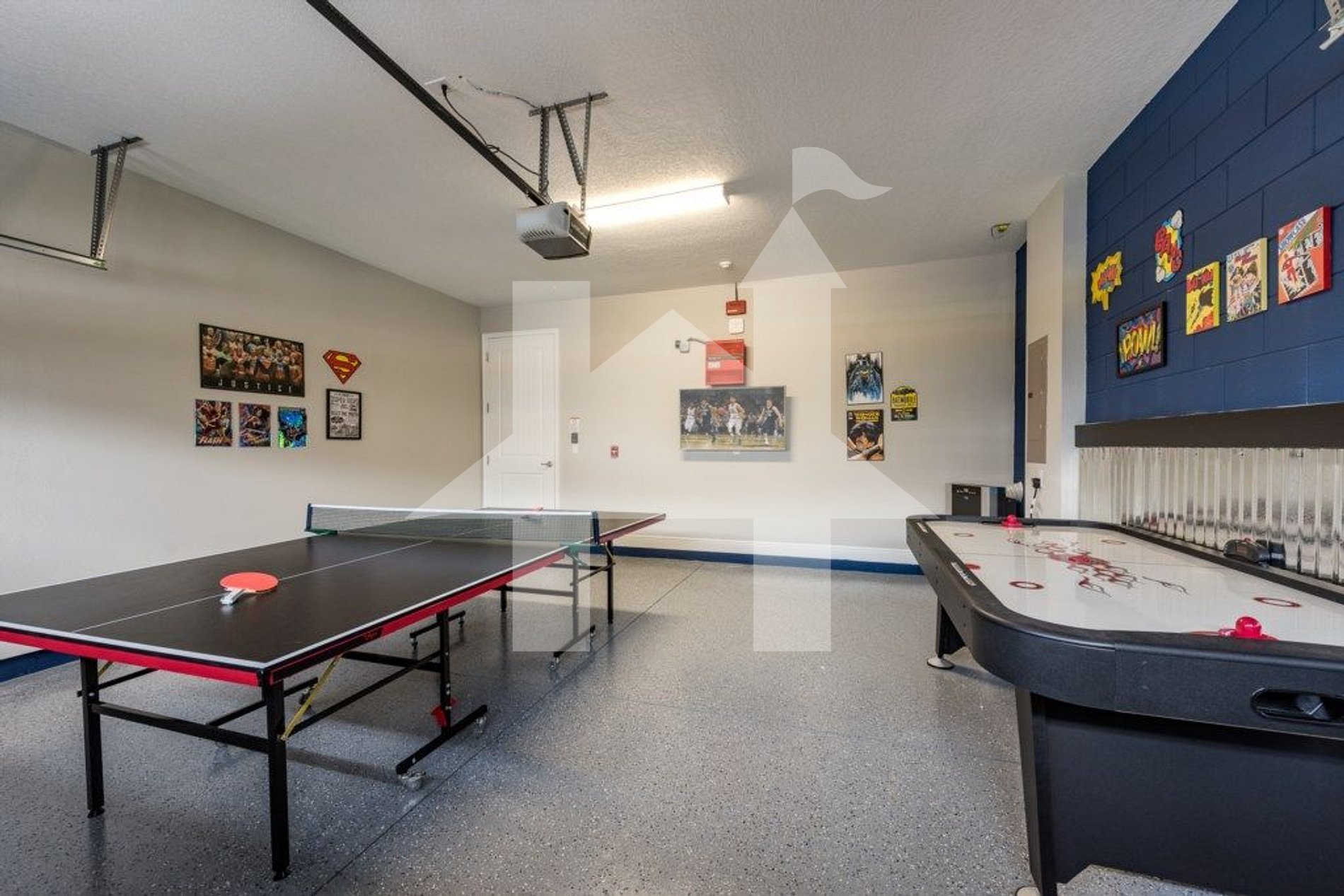 • Game room with ping pong, air hockey, PS4, and flat-screen TV
