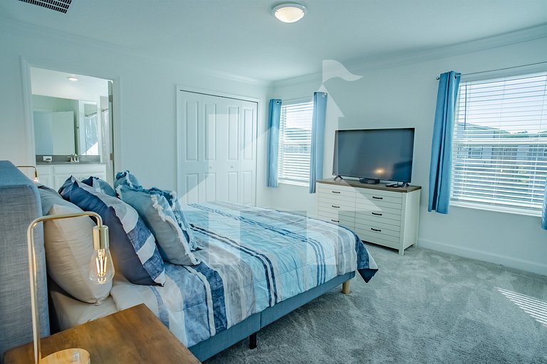 This luxurious two-story townhouse at Storey Lake Resort offers the perfect blend of comfort and convenience. The home features 4 bedrooms and 3 bathrooms, including a master suite with a king-size bed and a private bathroom. On the ground floor, you’ll find a spacious living area with a 5-seat sofa and a 65" SMART TV, as well as a fully equipped kitchen for homemade meals. The dining area seats up to 12 people (8 at the table and 4 at the breakfast bar), ideal for family dining.