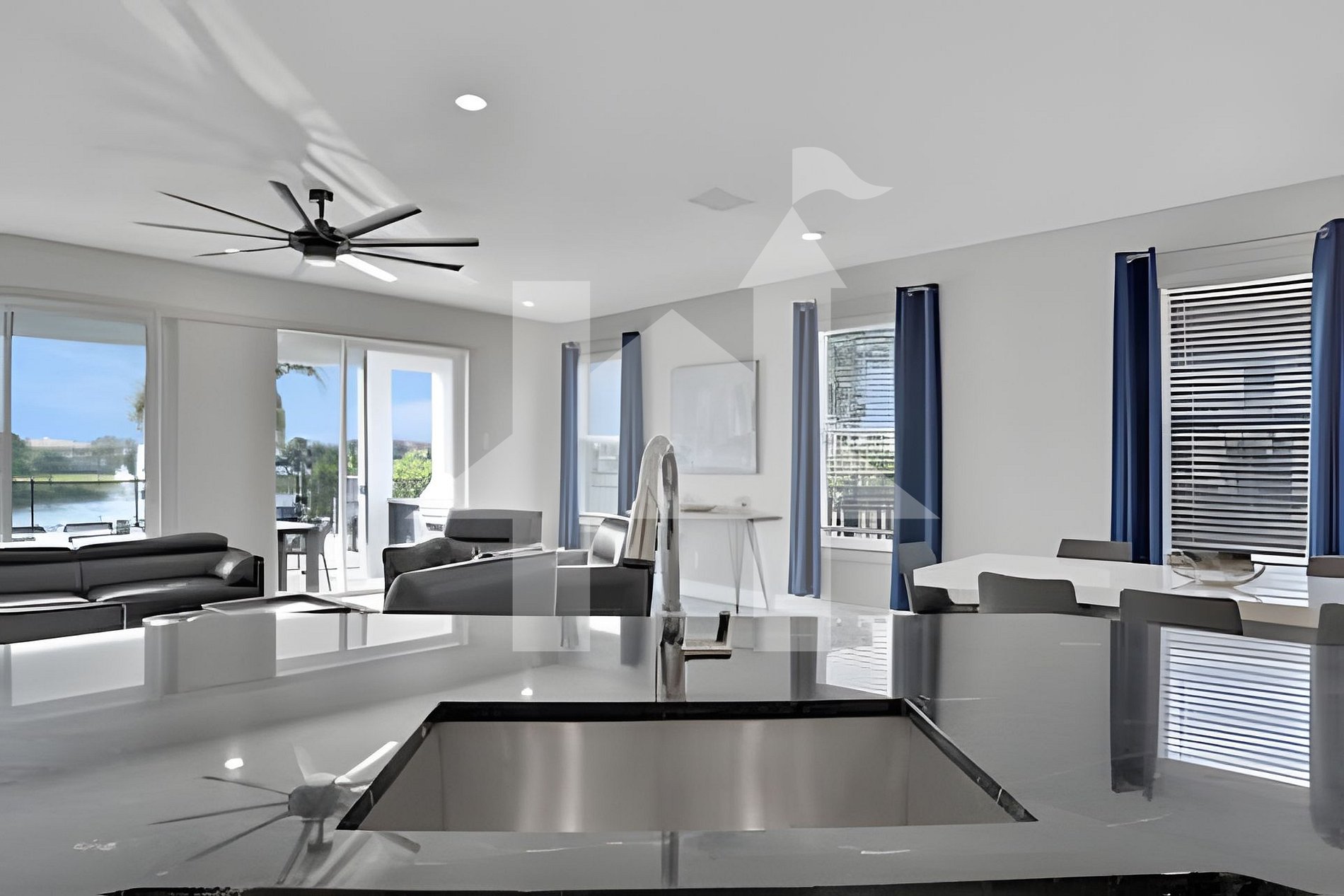 This stunning 6-bedroom, 5.5-bath villa sleeps up to 14 guests and overlooks a peaceful lake with west-facing sunsets. Enjoy a private pool & spa, outdoor dining for 10, BBQ summer kitchen, and premium loungers for relaxation.