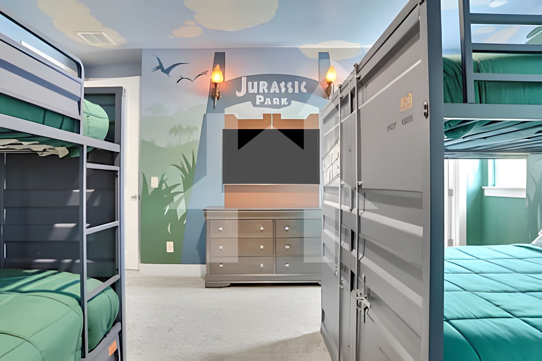 • Jurassic Park Room #6: Two Full-over-Full bunk beds, adventure décor
