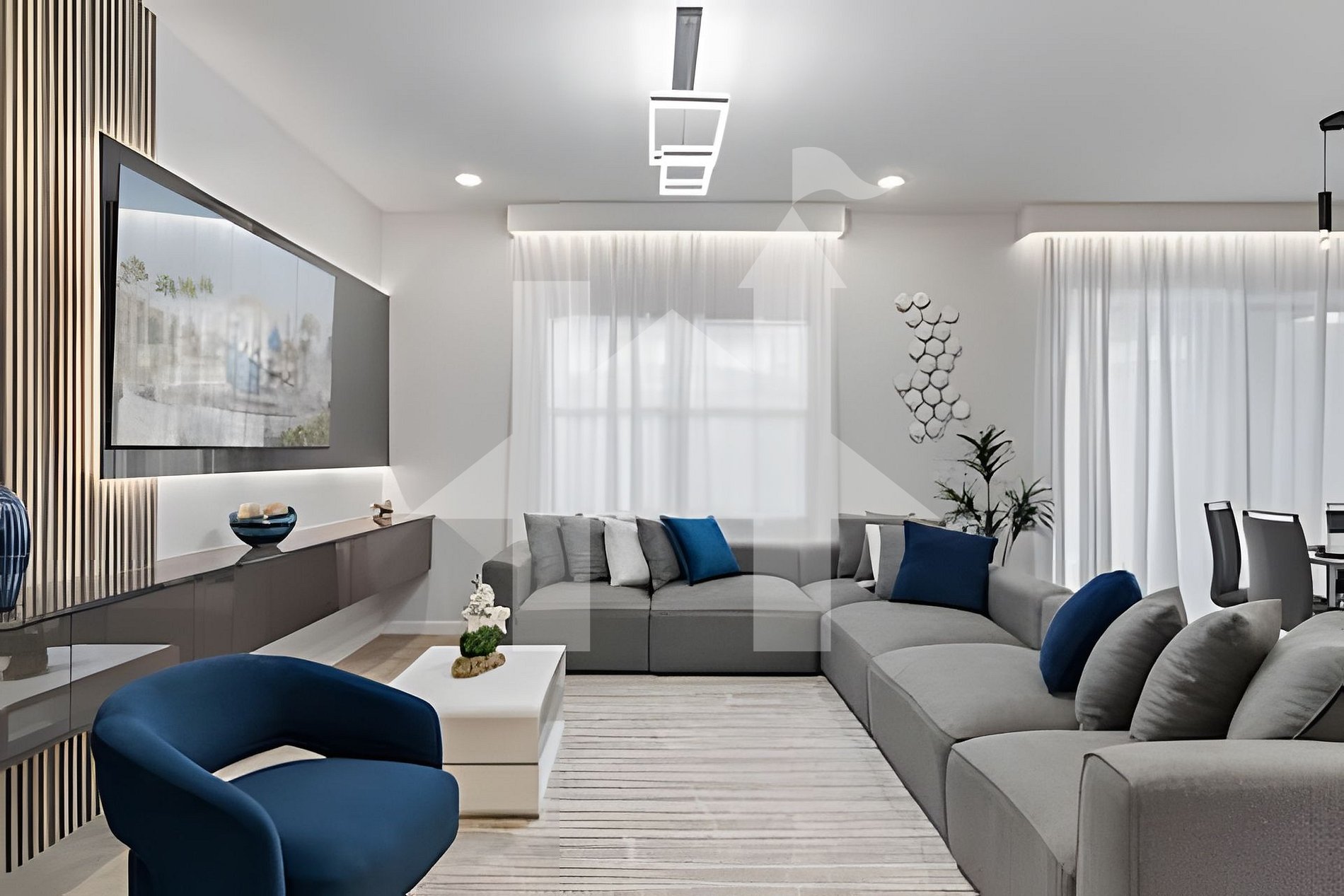 Step into a grand open-concept living area flooded with natural light, where contemporary design and refined comfort create the perfect gathering space. The fully equipped kitchen features top-of-the-line appliances, quartz countertops, and seating for the entire family.