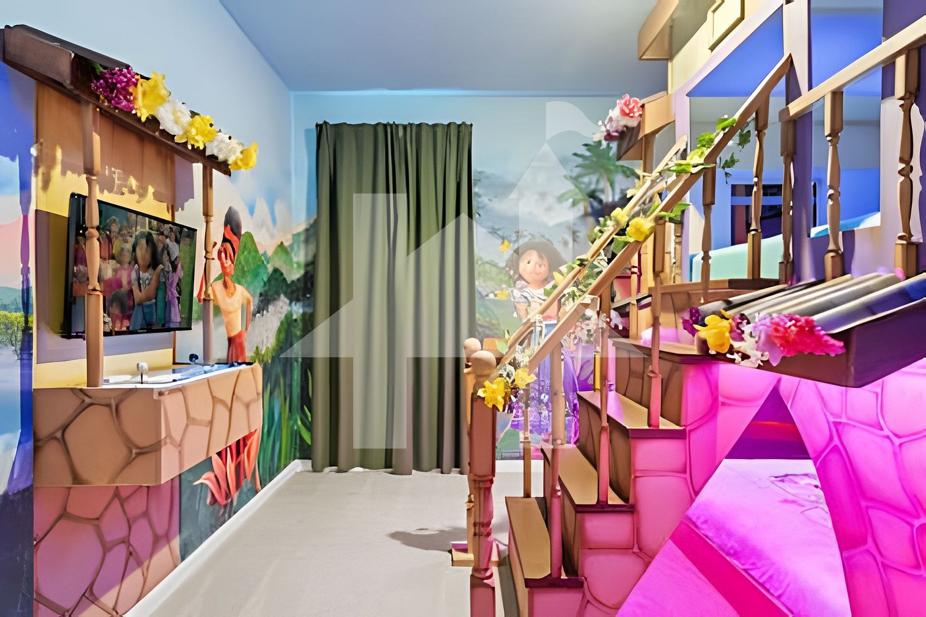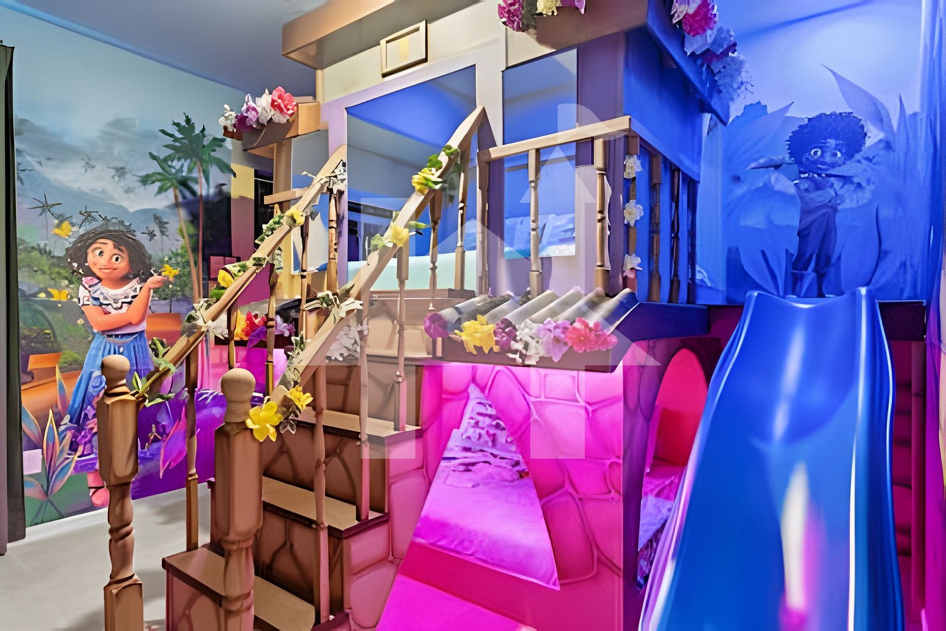 Located in the brand-new Paradiso Grande Resort, this stunning 9-bedroom, 8-bathroom luxury villa combines sophistication with immersive themed fun. Just 12 minutes from Disney and 5 from Universal and SeaWorld, it’s the perfect base for unforgettable family adventures.