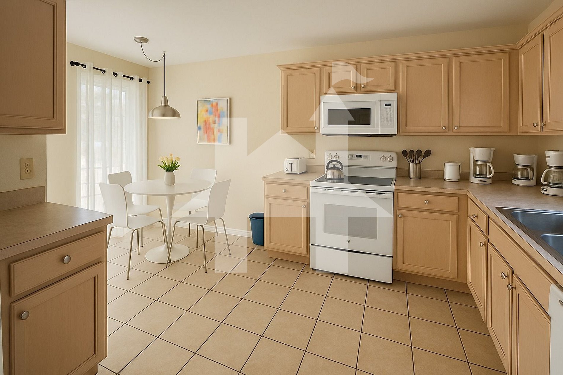Includes a microwave, blender, toaster, and coffee maker. A supply of linens and towels is provided for your use.