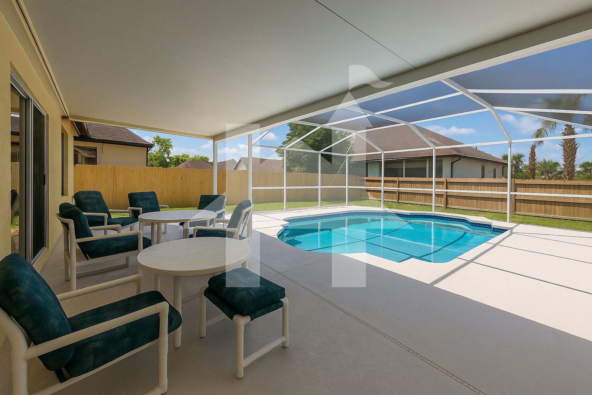 Sparkling Private Screen-Enclosed Swimming Pool: