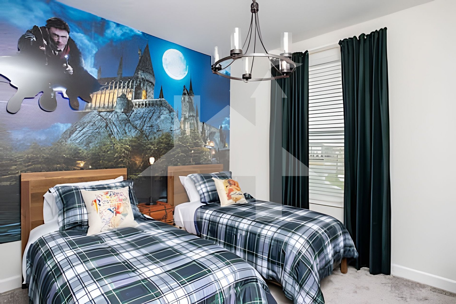 This modern two-story home in Champions Gate Resort blends comfort, style, and family fun. Located about 18 minutes from Disney and approximately 40 minutes from Universal, the property offers a private pool and spa, immersive themed bedrooms, and full access to one of the most complete resort communities in the Orlando area. It is the perfect space for families and groups who want to enjoy the parks during the day and relax in a spacious and comfortable home at night.