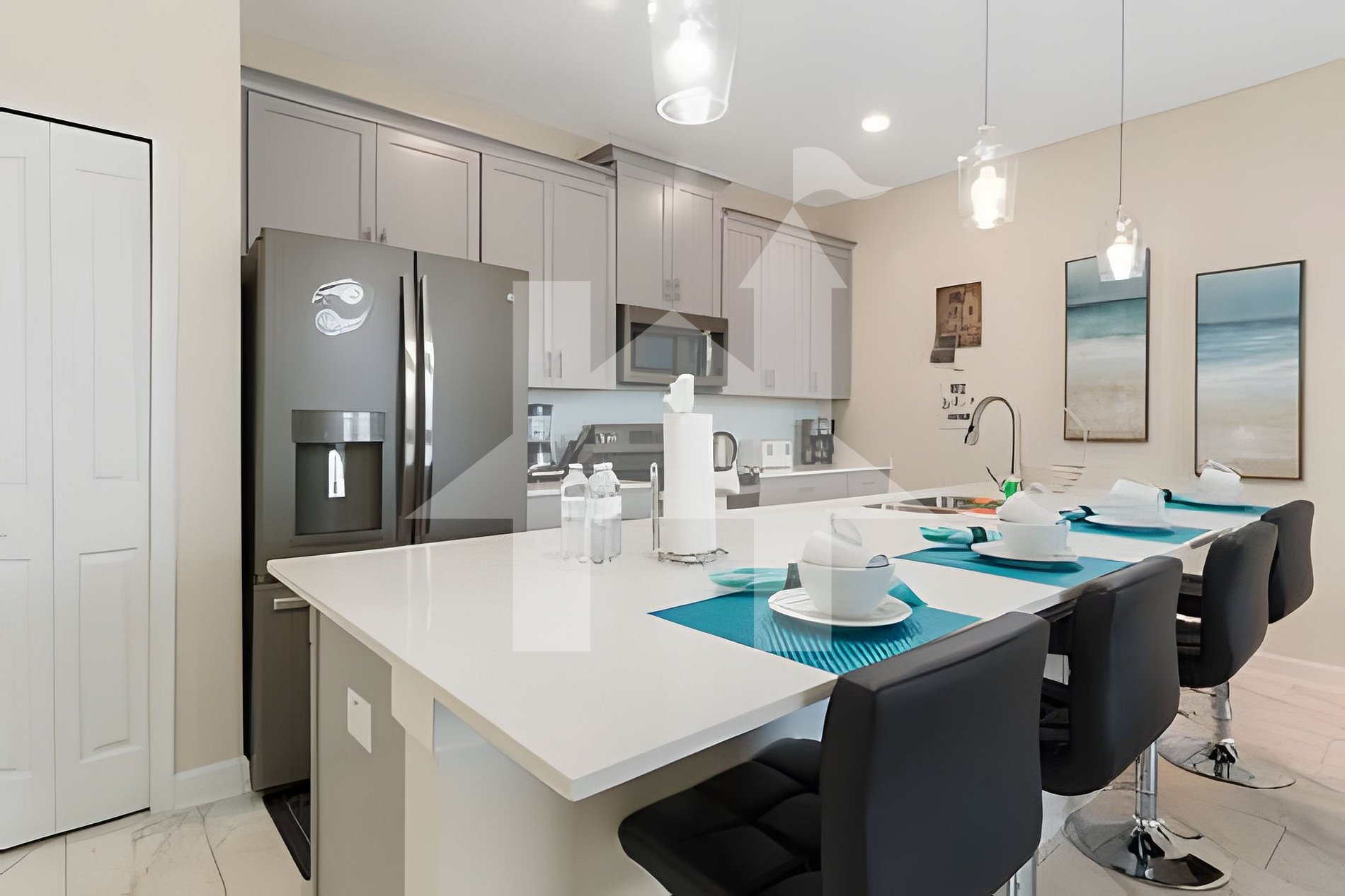 This beautiful, modern townhouse in Storey Lake Resort (Kissimmee, FL) offers the perfect blend of comfort and fun. Located just 10 minutes from Disney and with access to full resort amenities, the home features a private pool (heating/jacuzzi optional), a fully equipped kitchen, and open living spaces ideal for families or groups. A Mickey-themed bedroom adds charm, while the overall design delivers a stylish, relaxing stay.