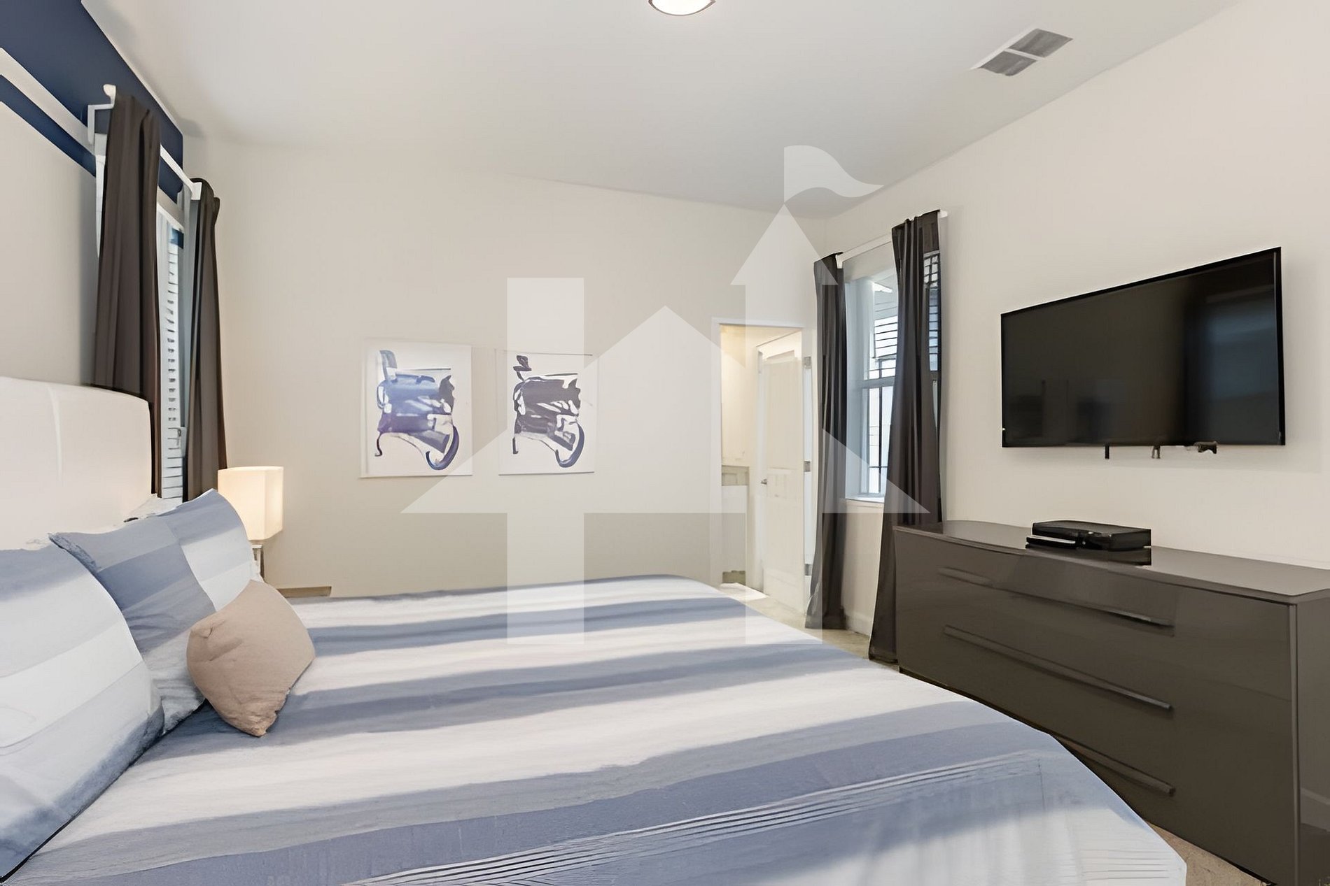 Bedroom 1: King-sized master suite with a private bathroom.