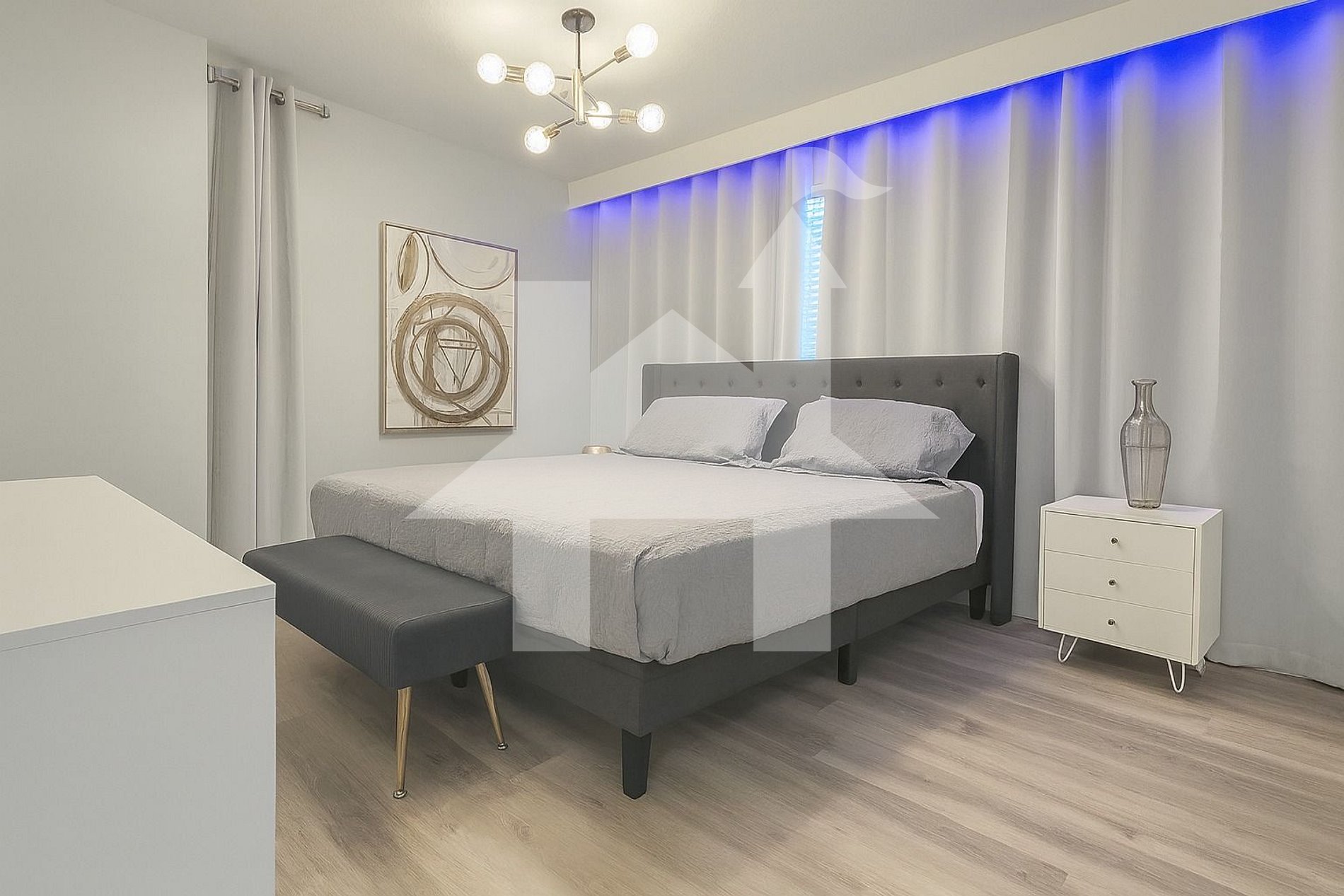 Modern 5BR/4BA home at Storey Lake Resort, sleeps up to 13 guests. Less than 20 minutes from Disney, this spacious retreat features 2 master suites, themed bedrooms, private pool, fully equipped kitchen, dining for 12, fast WiFi, and washer/dryer.