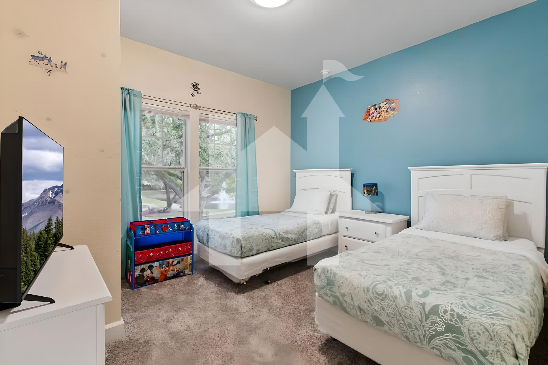 Bedroom 1: Two twin beds (kid-friendly)