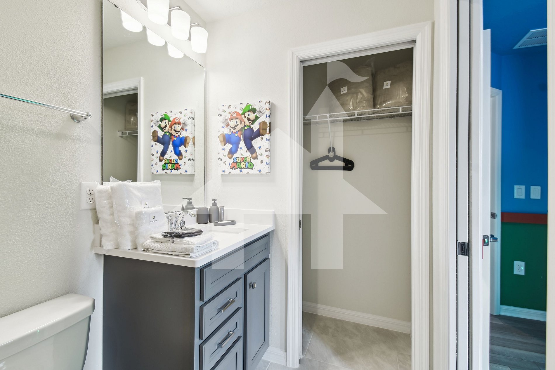 - Mario Bros Suite: Bunk bed (Full over Full), SMART TV, closet, and shared bathroom.