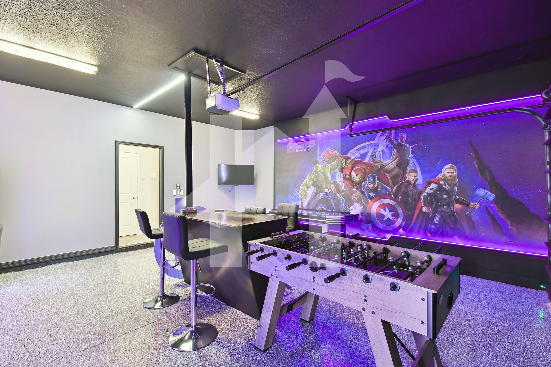 Your family will love the Avengers-themed game room, featuring: