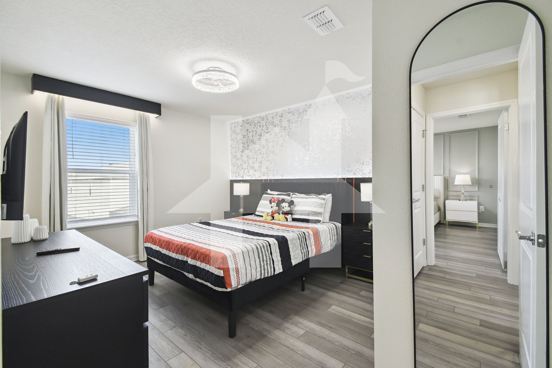 - Mickey & Minnie Suite: Queen bed, SMART TV, closet, and private bathroom.