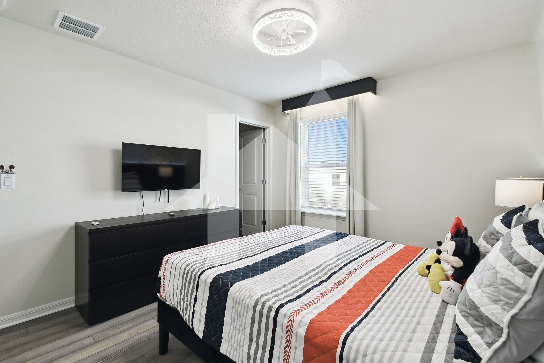 - Mickey & Minnie Suite: Queen bed, SMART TV, closet, and private bathroom.