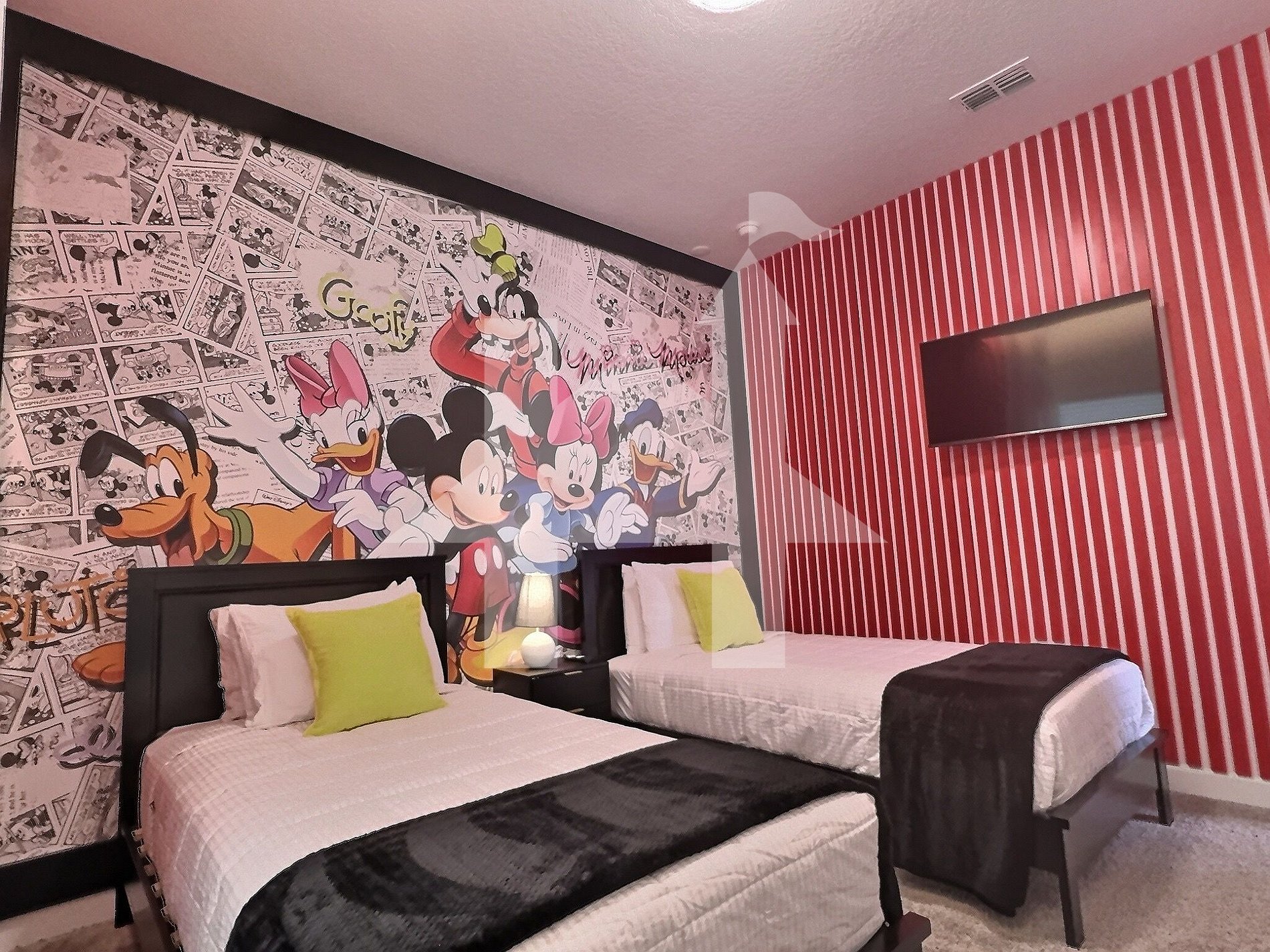 Bedroom 3: Two twin beds (Mickey-themed room).