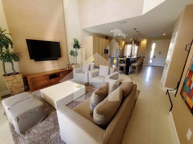 -Fully equipped kitchen integrated into the TV room with sofas and a chaise;