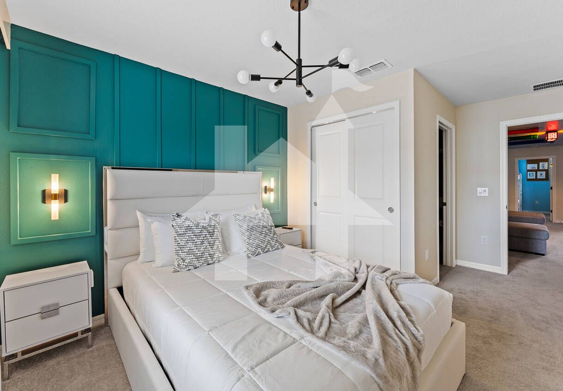Located in Windsor Island Resort in Kissimmee, this modern, family‑friendly two-story home offers 5 bedrooms, 4.5 baths, a private pool and patio, and themed kids’ rooms. Just ~10 miles from Disney, it’s ideal for families or groups seeking a blend of privacy, fun, and resort amenities.