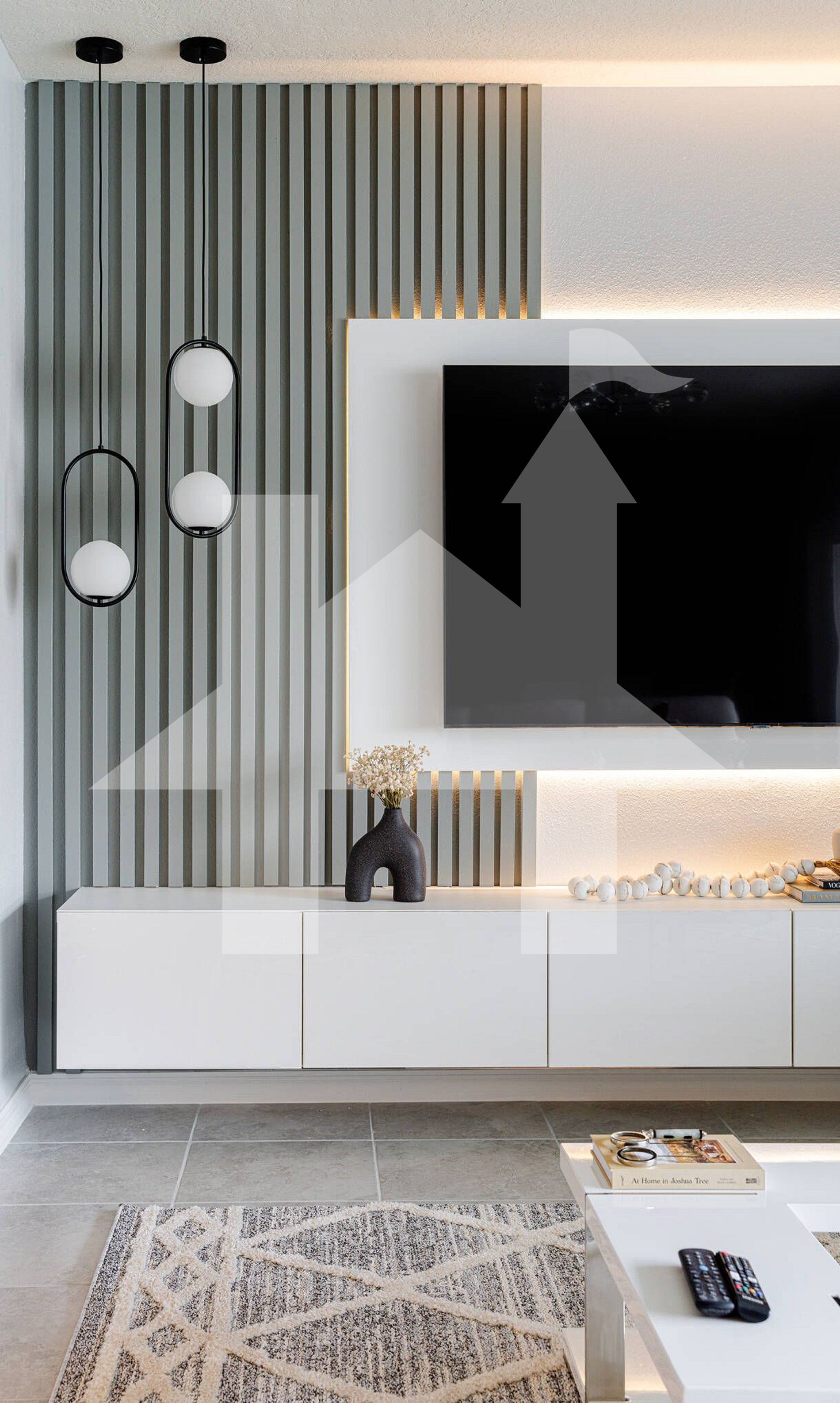 Open living and dining area with smart TV