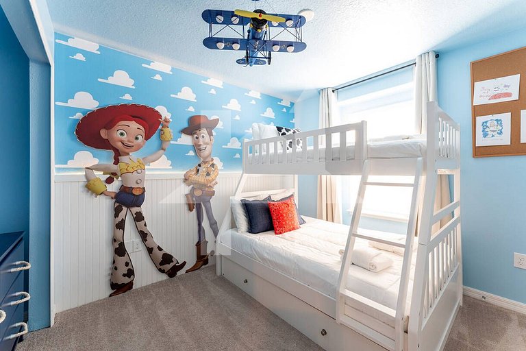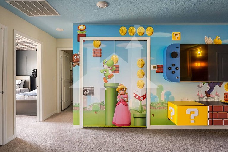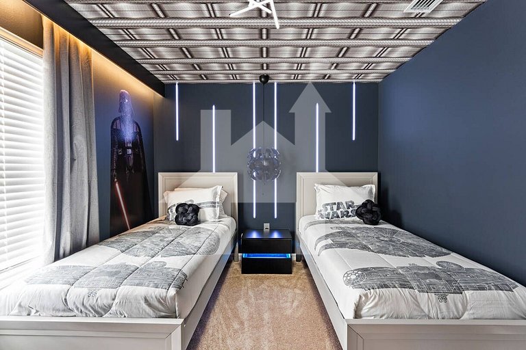 Located in Windsor Island Resort in Kissimmee, this modern, family‑friendly two-story home offers 5 bedrooms, 4.5 baths, a private pool and patio, and themed kids’ rooms. Just ~10 miles from Disney, it’s ideal for families or groups seeking a blend of privacy, fun, and resort amenities.
