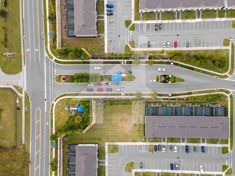 The home sits close to major roads, making travel to Disney, Universal, and other top destinations convenient. Parking is free on-site, and the resort roads are laid out for easy access.