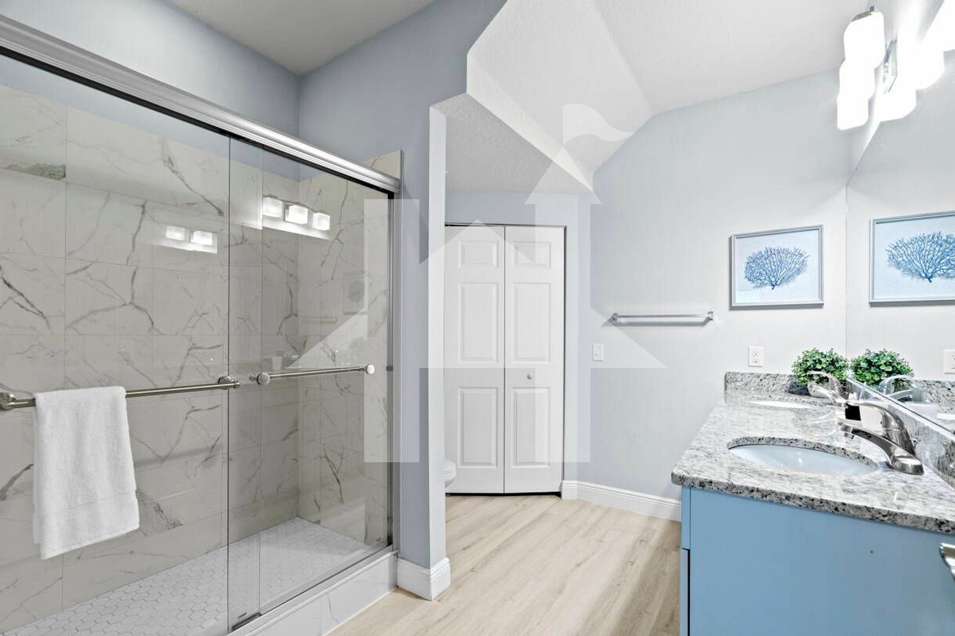 This beautifully furnished and fully renovated two‑story home is nestled within the gated resort community of West Lucaya just 12 minutes from Disney parks and within walking distance of restaurants, Walmart, Publix and other conveniences. With vinyl flooring on the main level, large smart TVs, free WiFi and resort access, you’ll enjoy a stay that blends style, comfort and practicality.