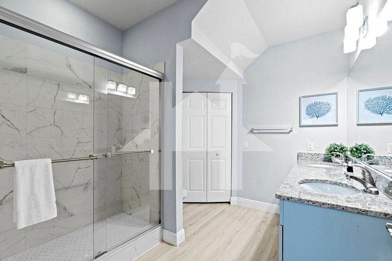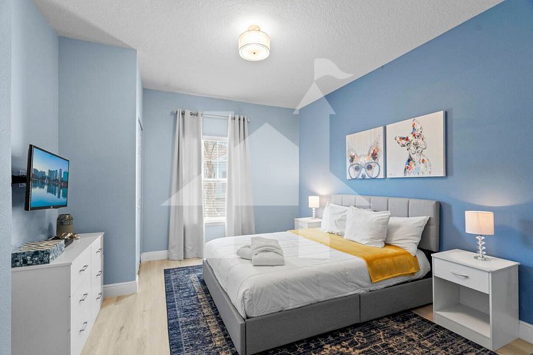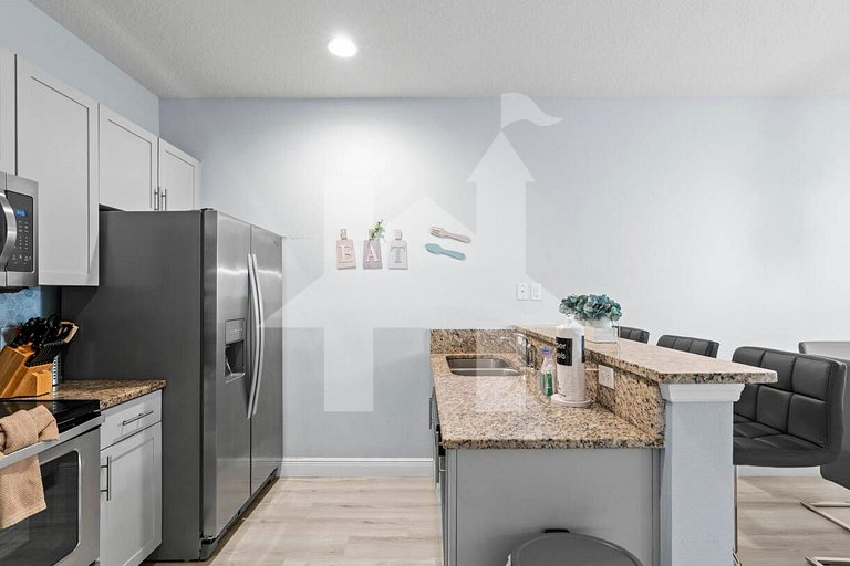 Just 12 minutes from Disney parks, this fully renovated two‑story home offers 3 bedrooms (including a bunk bed upstairs), modern furnishings, and 55″ smart TVs. Located within the resort community of West Lucaya, you’ll have access to the clubhouse pool, fitness centre and kids’ space, while being steps from Walmart, Publix and restaurants. Ideal for family fun and convenience in one stay.