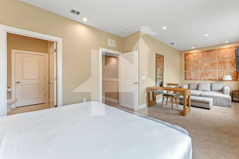 -Master suite: includes a king bed, a work desk, and a large chaise lounge for relaxation.