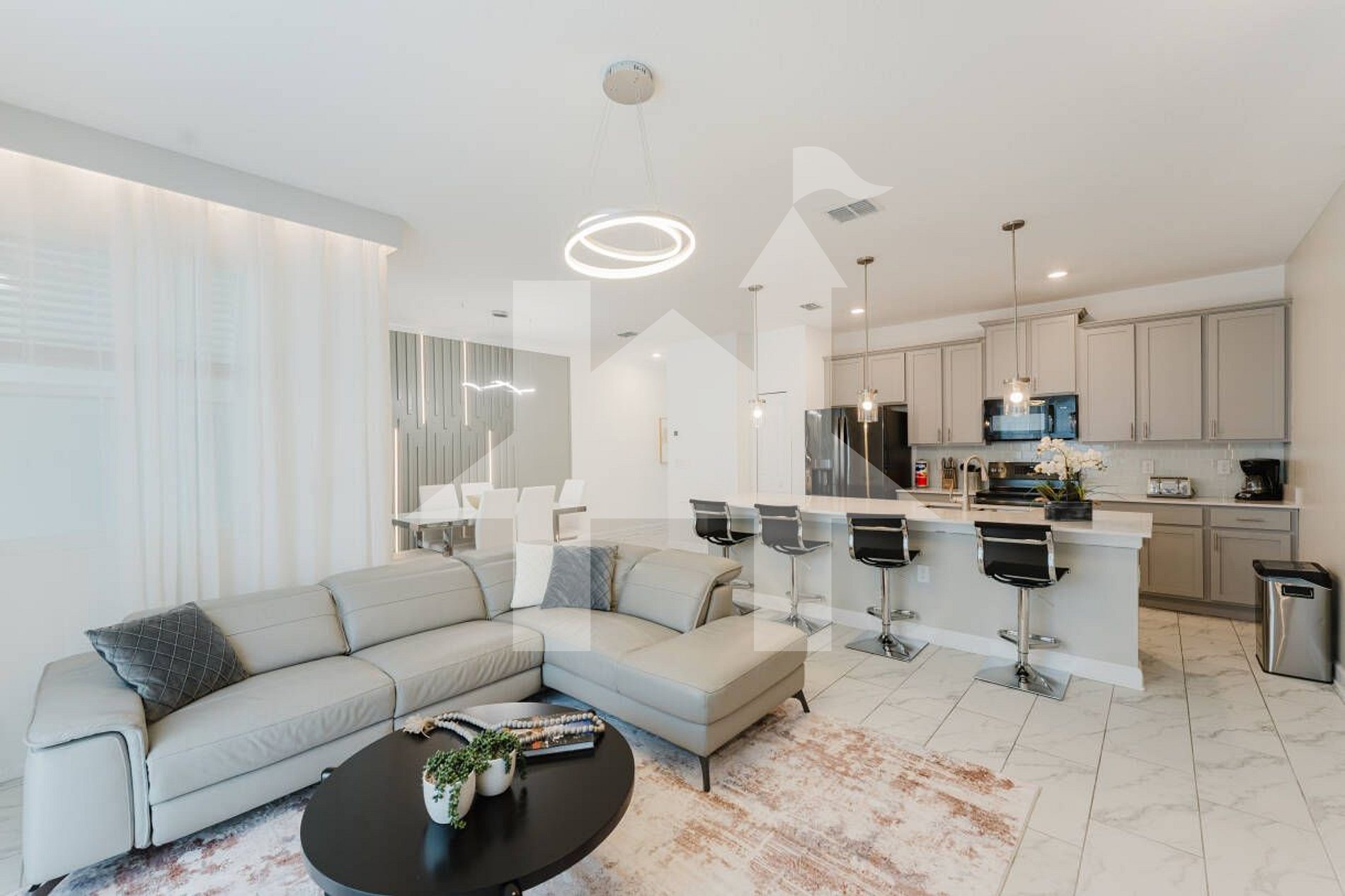 • Fully equipped kitchen with large island and 4 stools