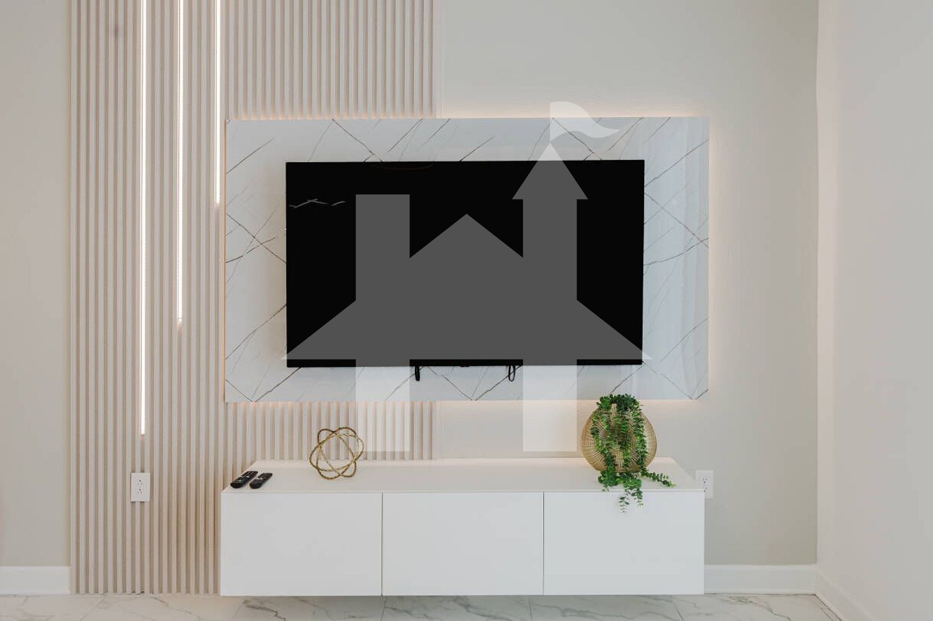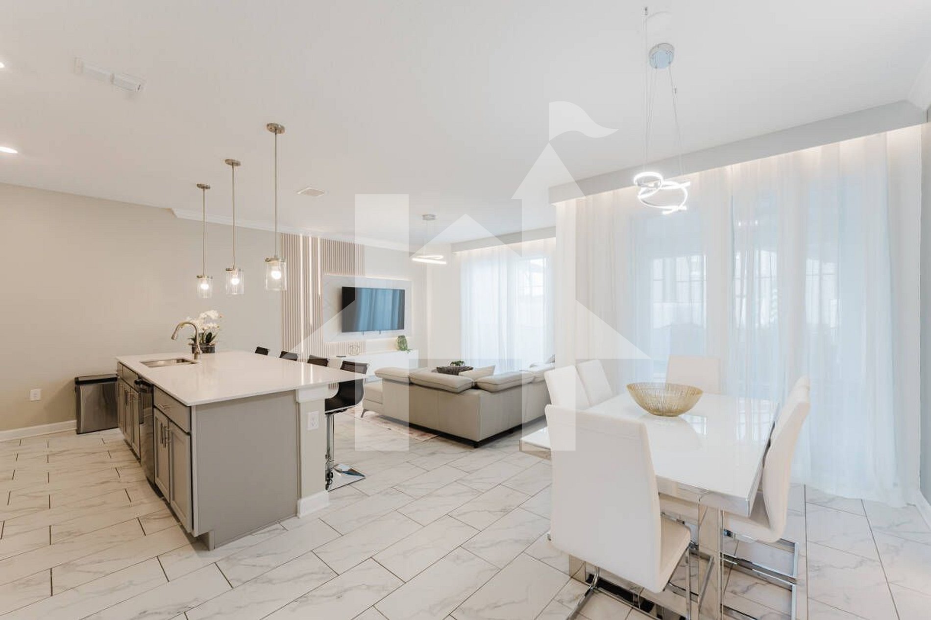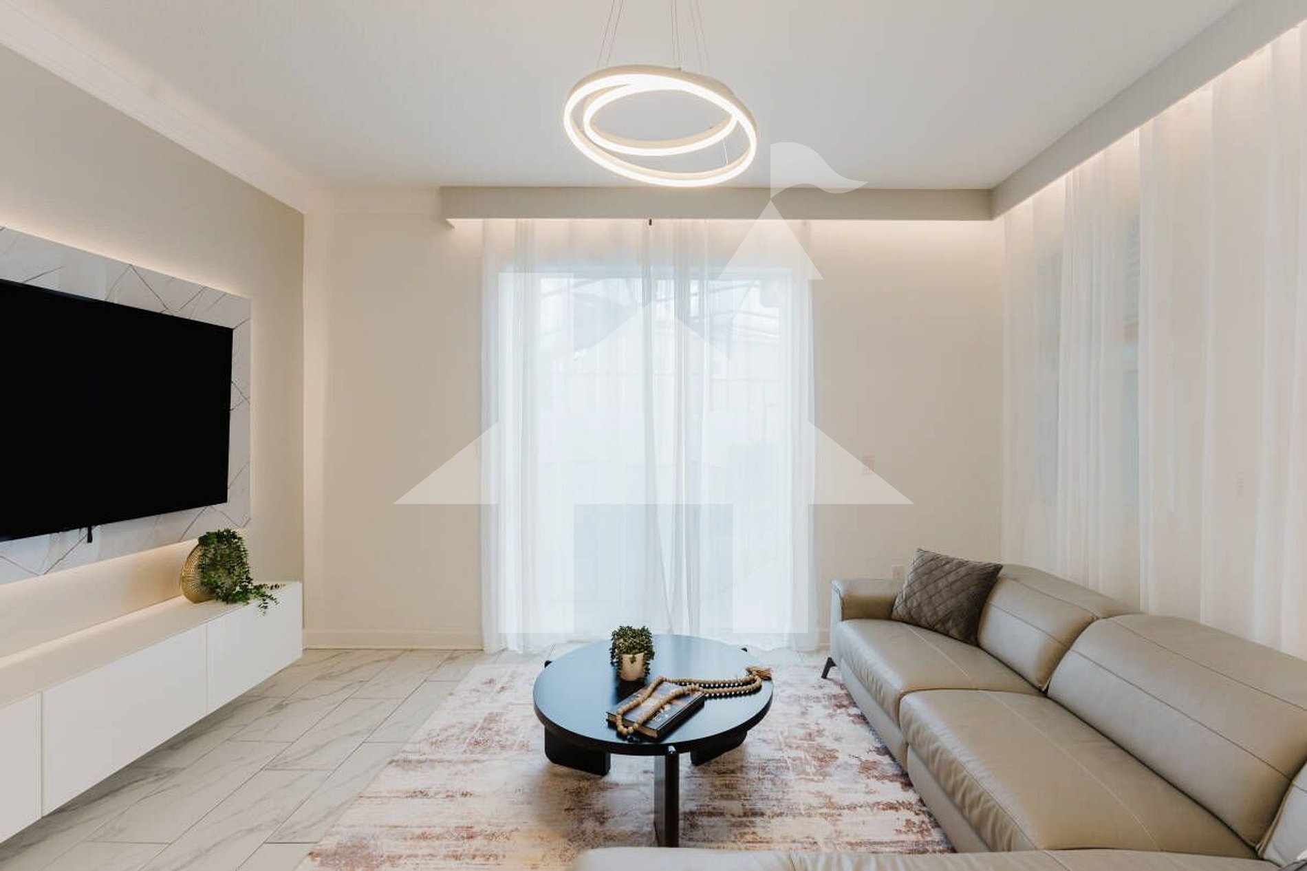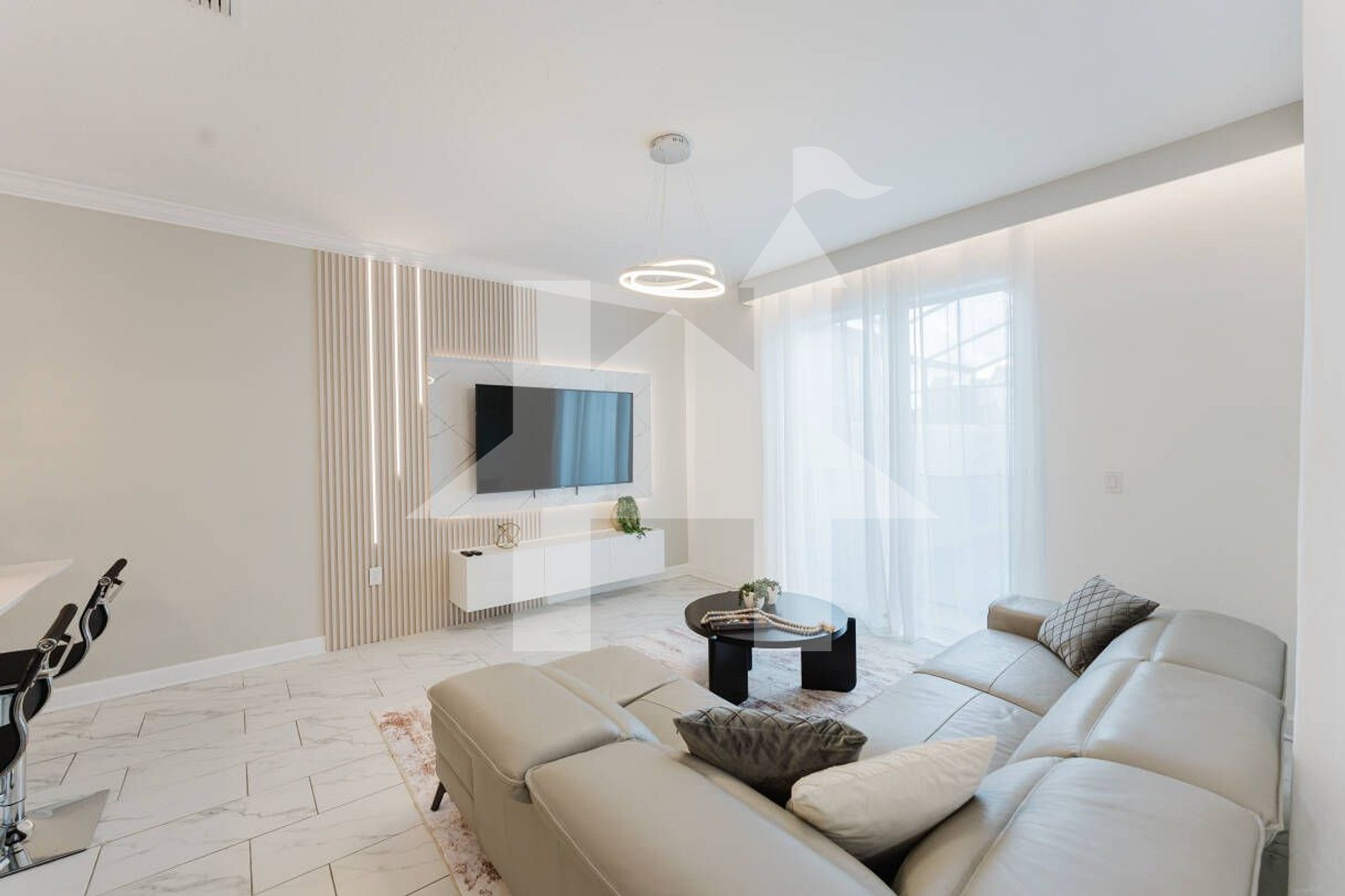 • Open living room with 65-inch Smart TV
