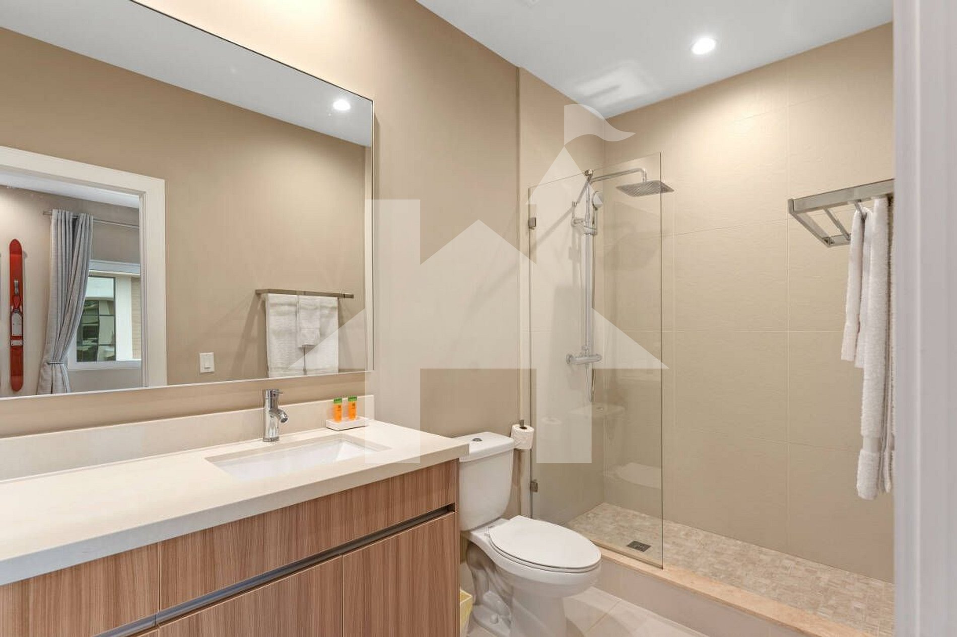 -Bedroom: Equipped with a king bed and a 50-inch TV, full bathroom, closet, and balcony.