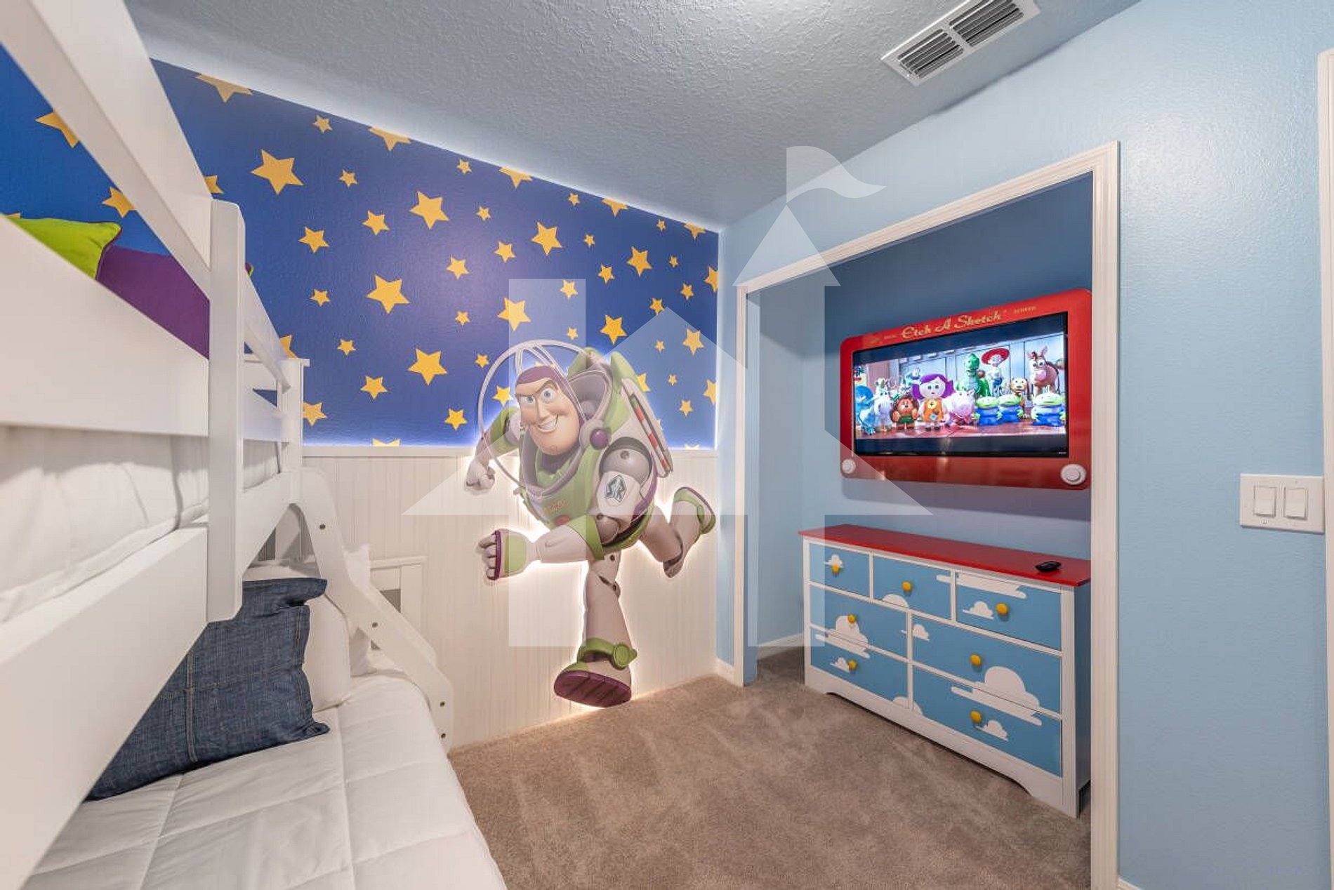 Themed Bedroom 2: Twin‑over‑full bunk + full bed, Toy Story theme