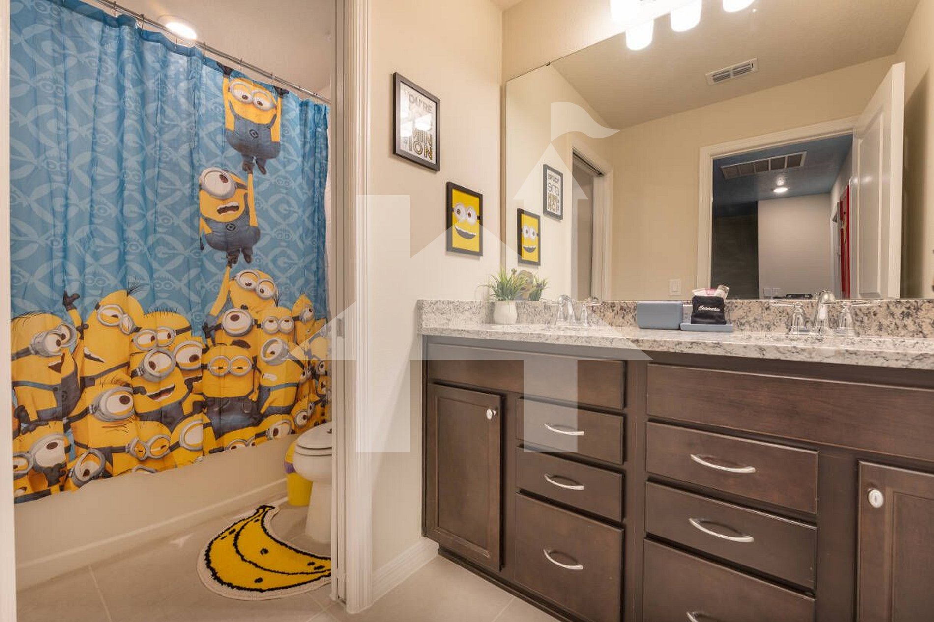 Windsor Island: A newly built, two-story house offering 5 bedrooms and 4.5 bathrooms. It accommodates up to 12 guests, featuring a fully equipped kitchen, spacious living areas, and themed bedrooms. Highlights include a private heated pool, a Mario-themed living area, a king-size master bedroom, and free WiFi. Resort amenities include pools, lazy river, hot tub, playground, fitness gym, and more, in a gated community with 24-hour security.