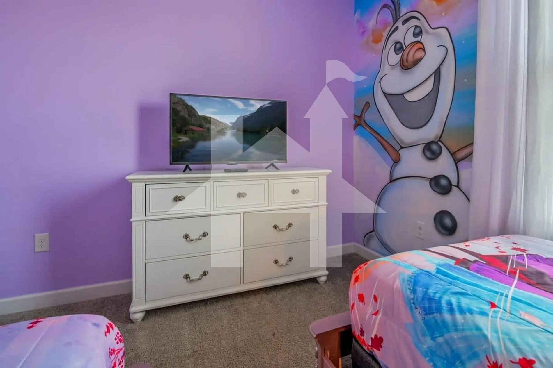 A Frozen-themed room with two twin beds, perfect for little adventurers