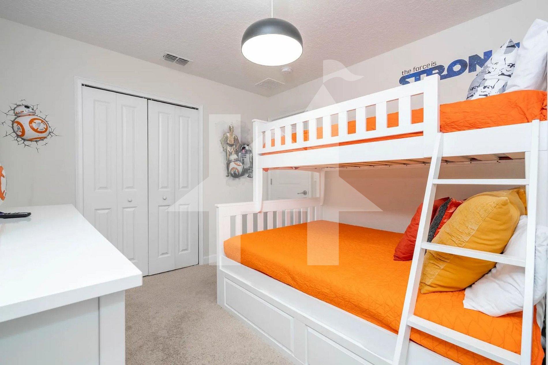 Star Wars-themed room: bunk (Full + Twin) + twin trundle