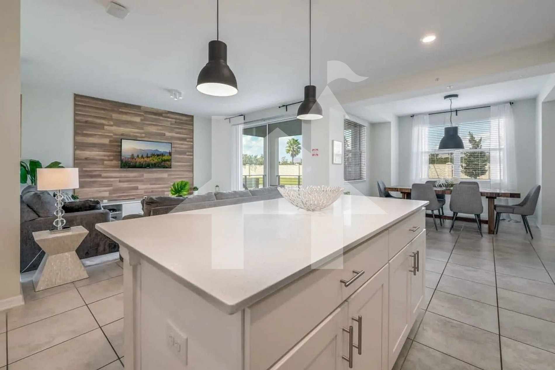 This spacious and thoughtfully designed condo comfortably accommodates up to six guests and is located within the renowned Storey Lake Resort — one of the most sought-after vacation communities in the Orlando area. With a harmonious open-concept layout, the living room, dining area, and fully equipped kitchen come together to create a welcoming and functional space perfect for relaxing and gathering after a day of adventure.