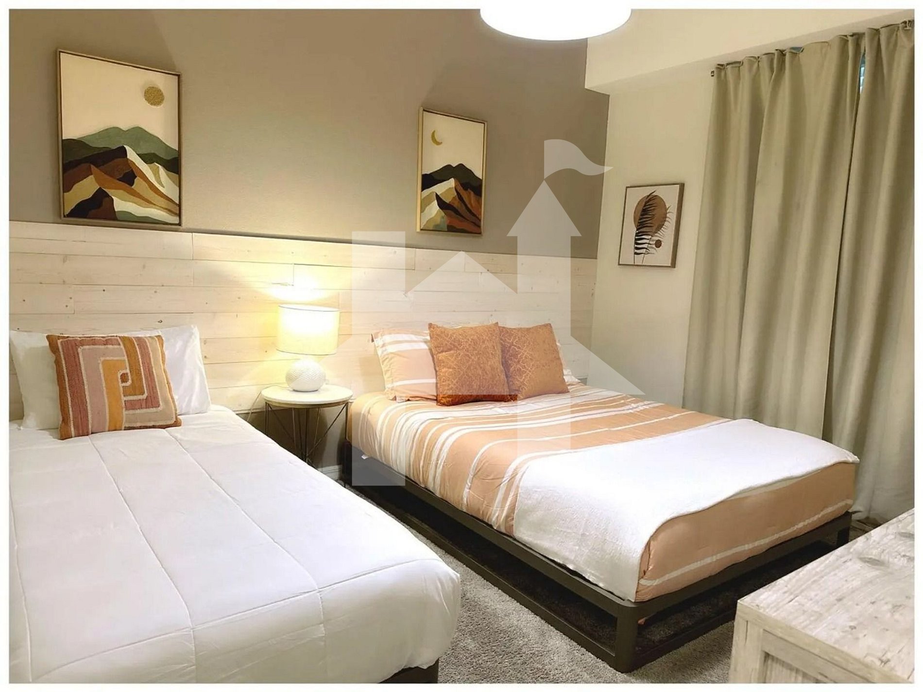 Bedroom 1 (Suite): 1 queen bed + 1 twin bed. Spacious and ideal for couples traveling with a child or anyone seeking a bit of extra room.