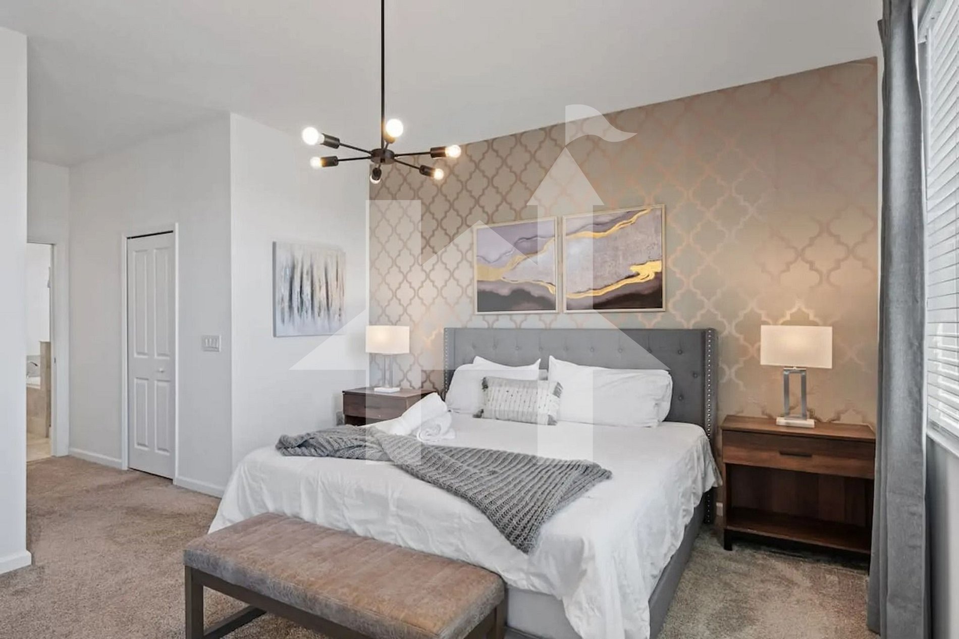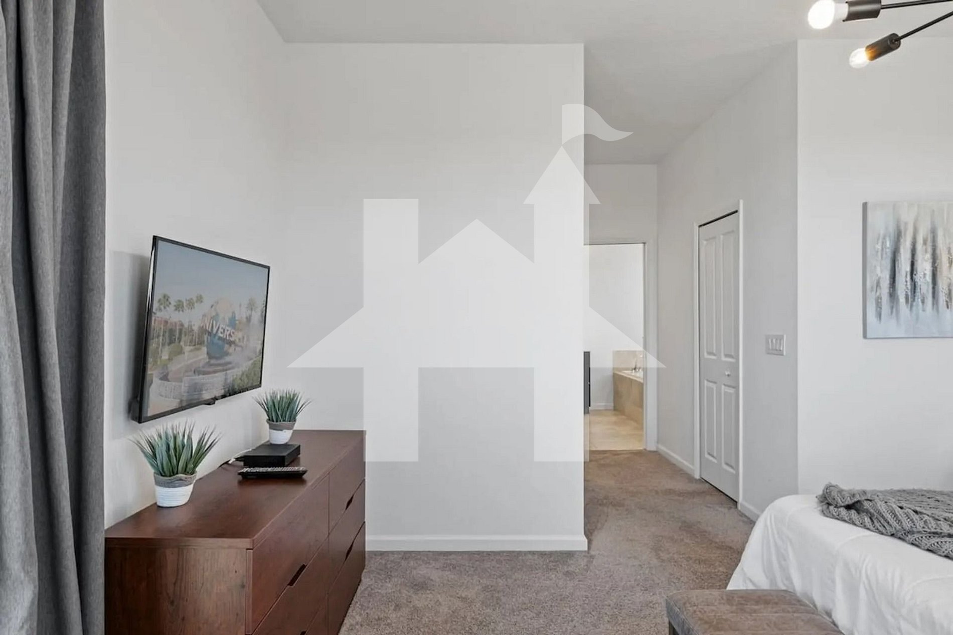 Master Suite (Sleeps 2): 1 king-size bed, private en-suite bathroom, Smart TV, and premium linens for a luxurious experience.