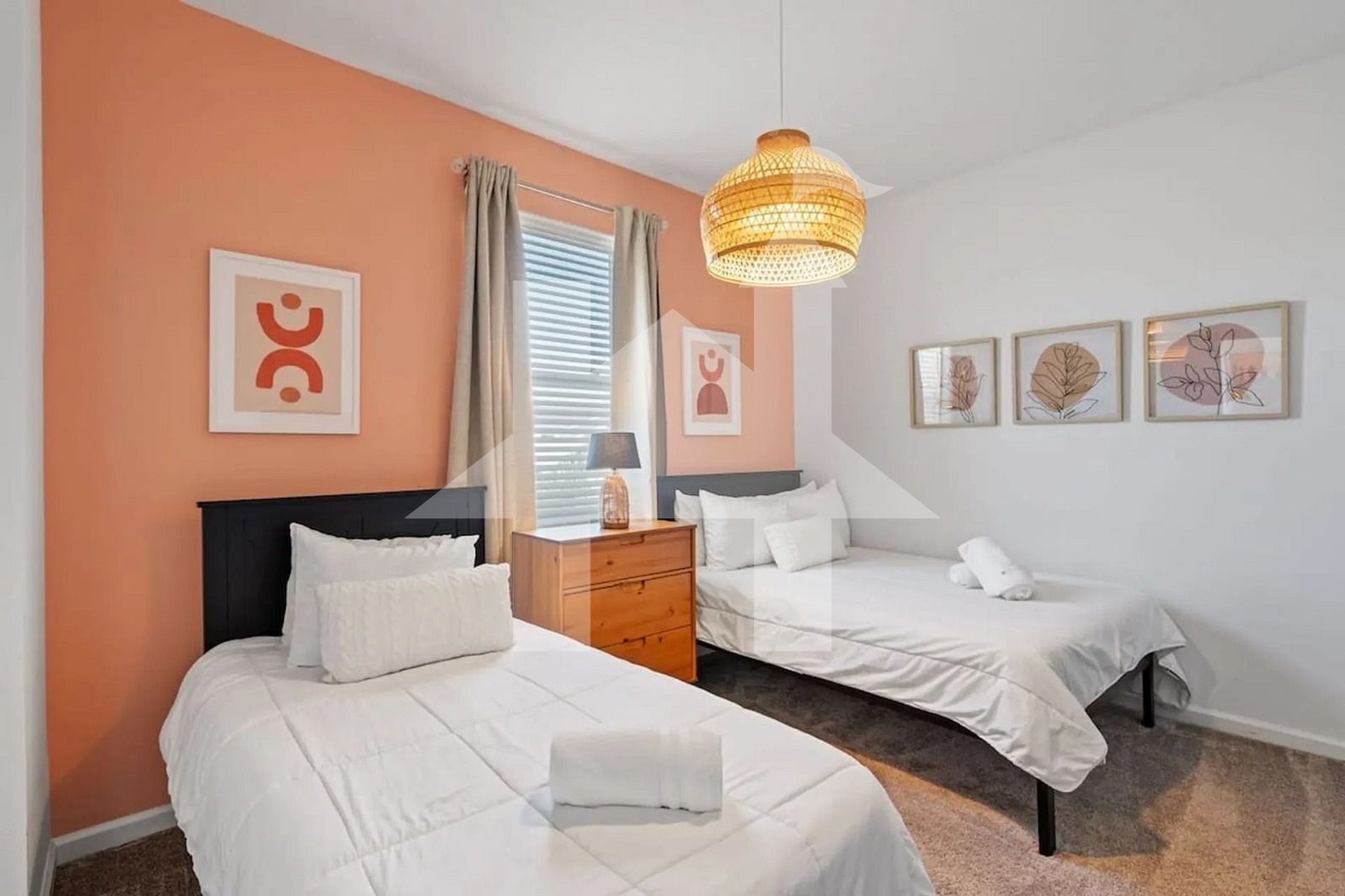 Bedroom 3 (Sleeps 3): 1 double bed + 1 twin bed, charming décor, and access to the shared bathroom.