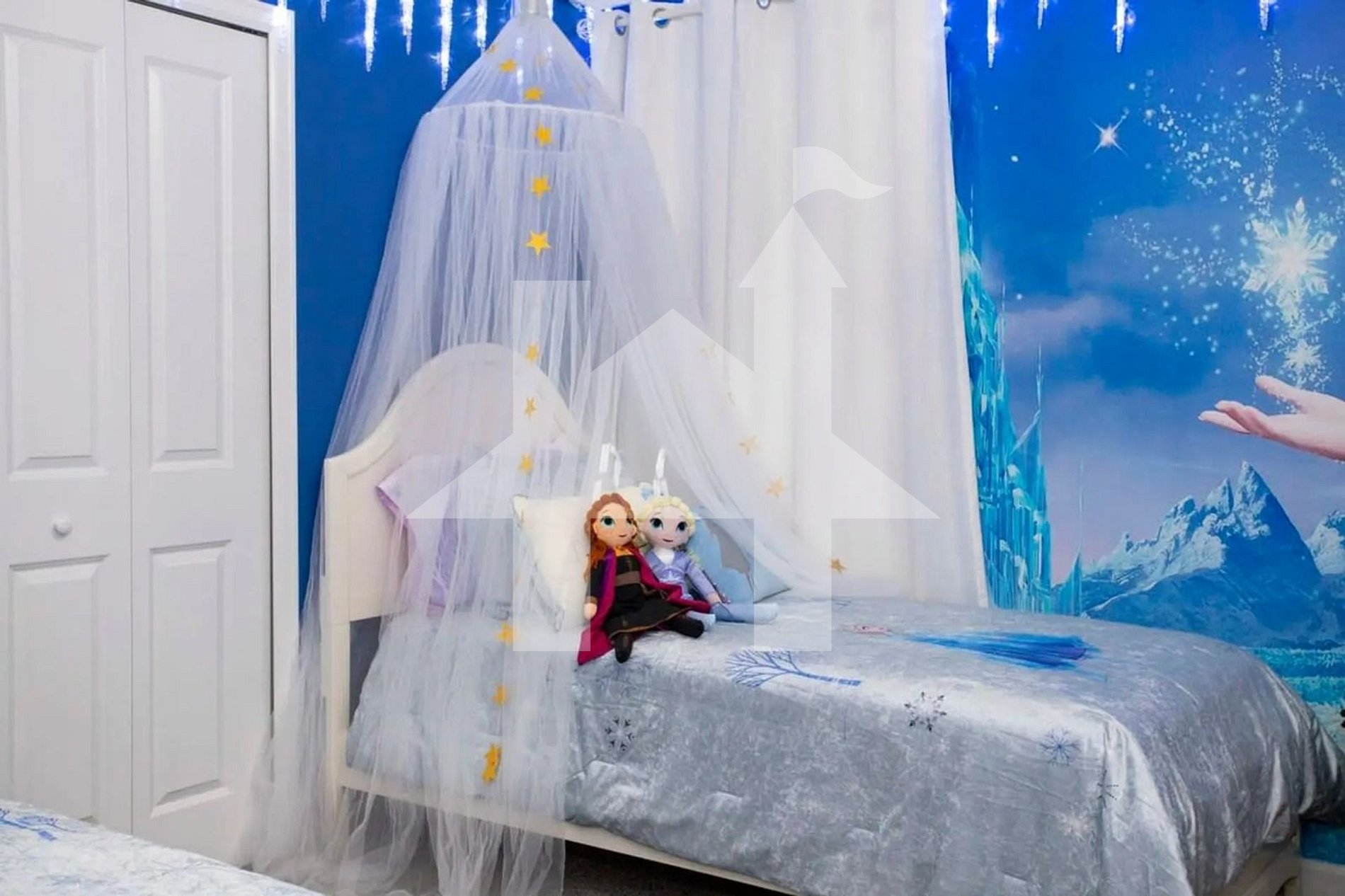 Frozen Bedroom – Two twin beds in a winter wonderland setting.