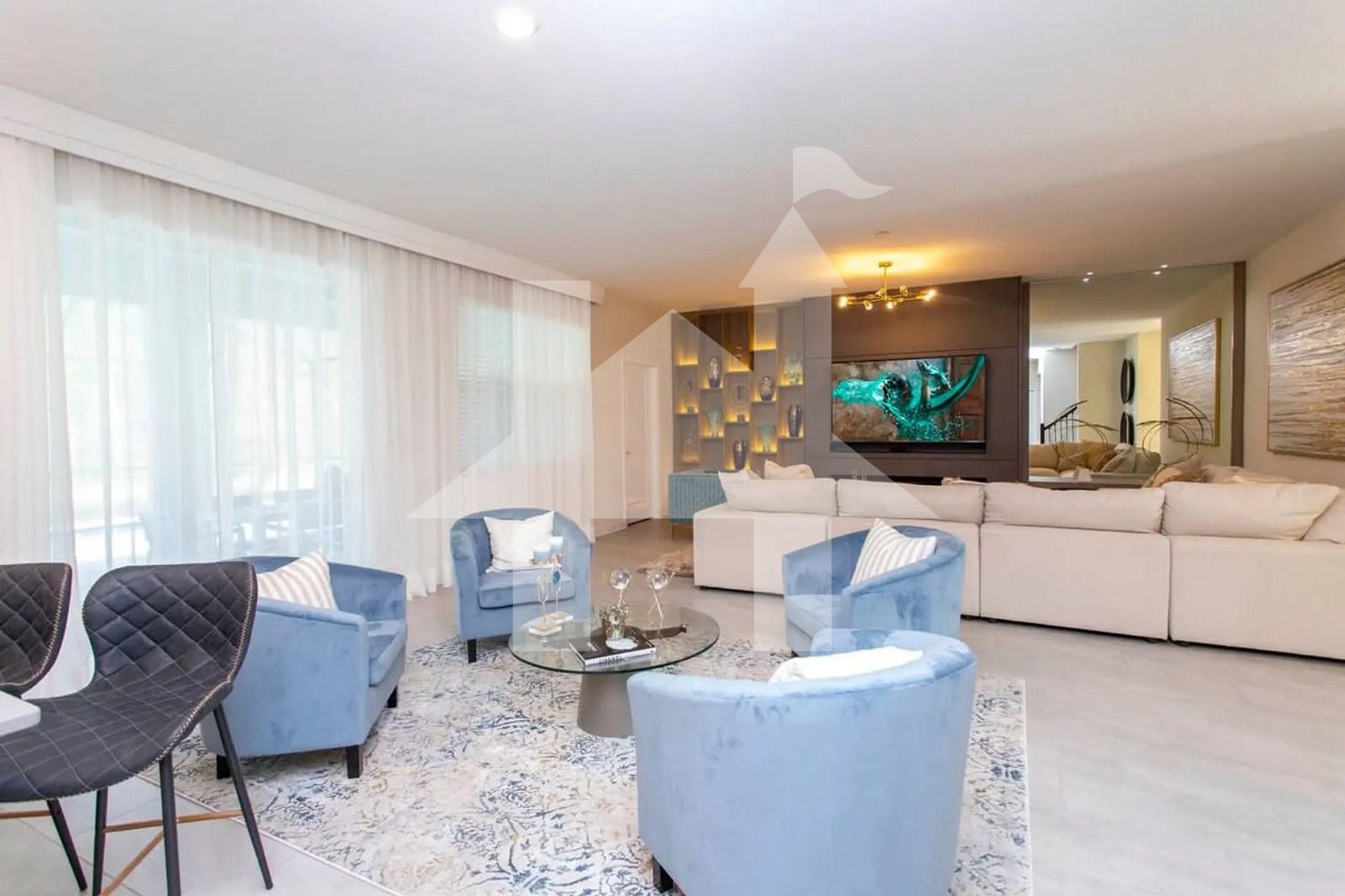 Spacious & Elegant Living Areas: Step inside and you’ll be welcomed by a grand living room with cozy seating, seamlessly connecting to a fully equipped kitchen and chic dining area. It’s the perfect space for family meals and relaxation.