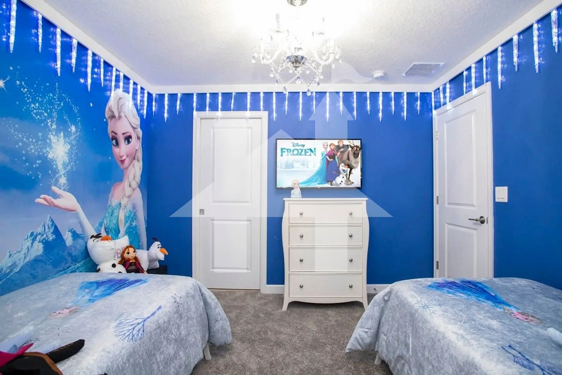 Frozen Bedroom – Two twin beds in a winter wonderland setting.