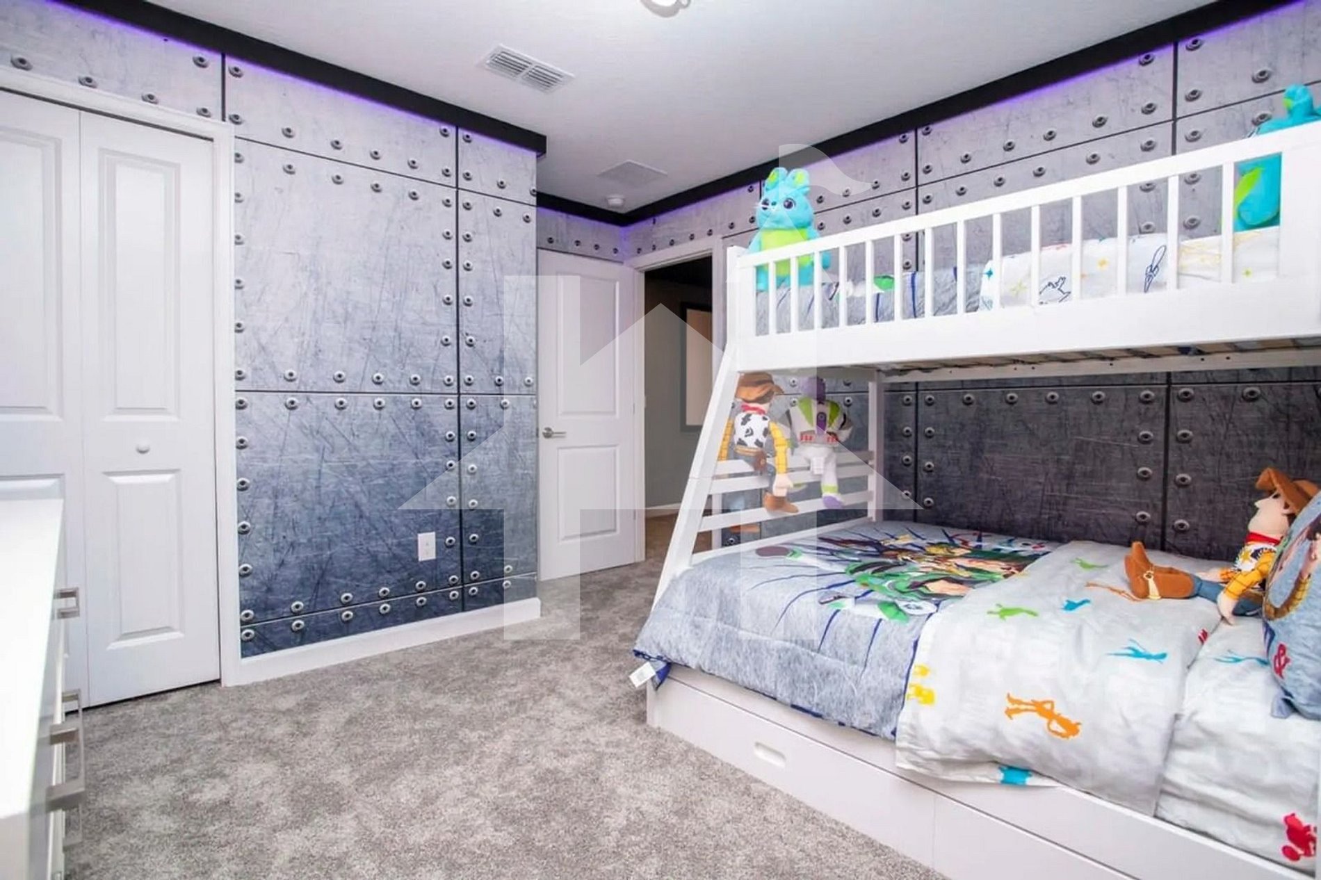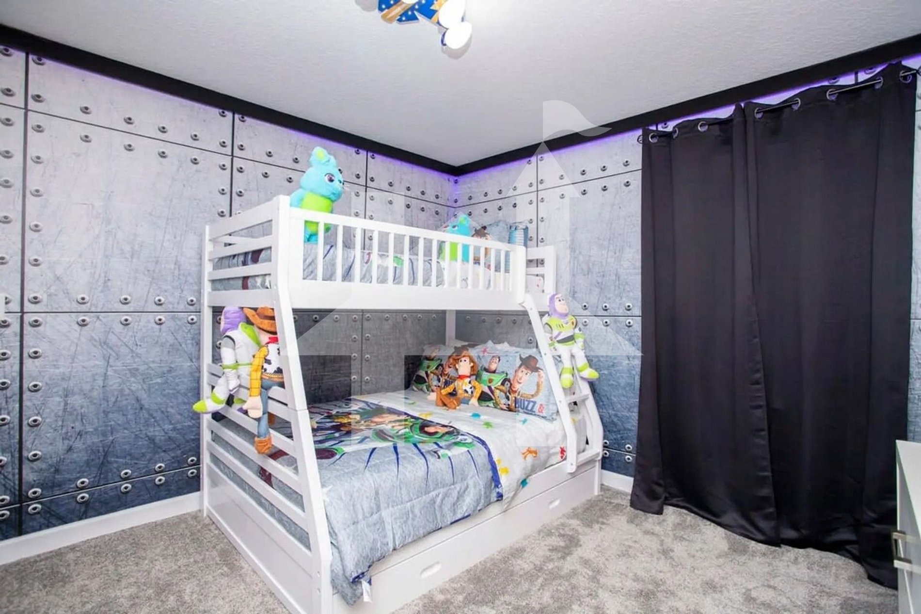 Toy Story Bedroom – Bunk bed (double + twin) for adventurous kids.