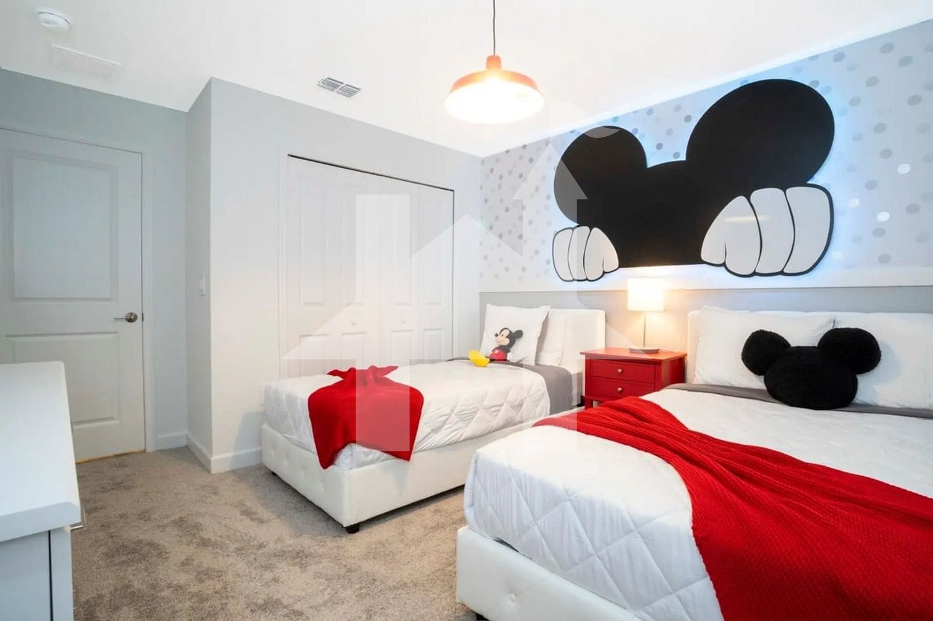 Bedroom 3 (Second Floor – Mickey Theme): 1 Full Bed + 1 Twin Bed