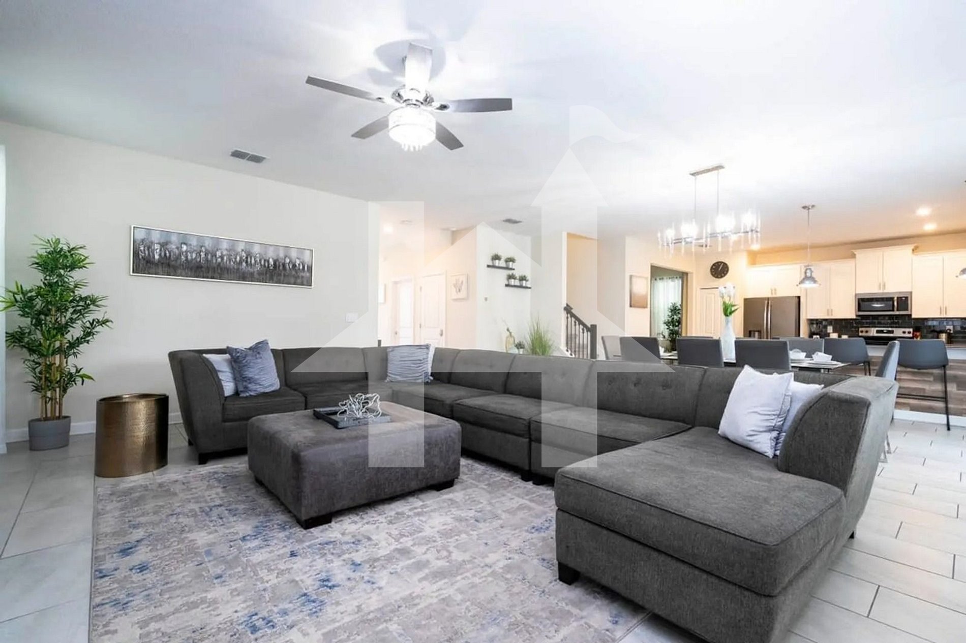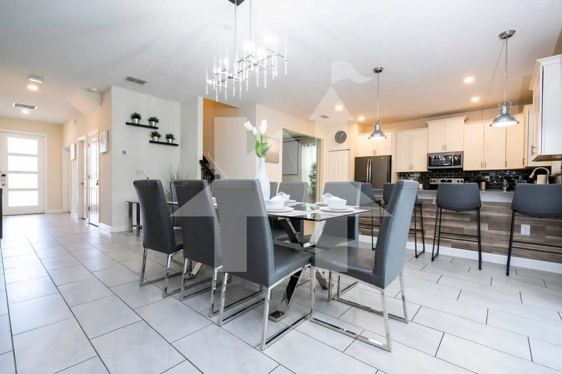Step into your dream vacation home a stunning 6-bedroom, 6-bathroom retreat located in the prestigious Storey Lake Resort, just minutes from Disney parks! This luxurious, fully furnished villa is perfect for families and groups of up to 16 guests, blending elegant design with fun themed elements that create unforgettable experiences for kids and adults alike.