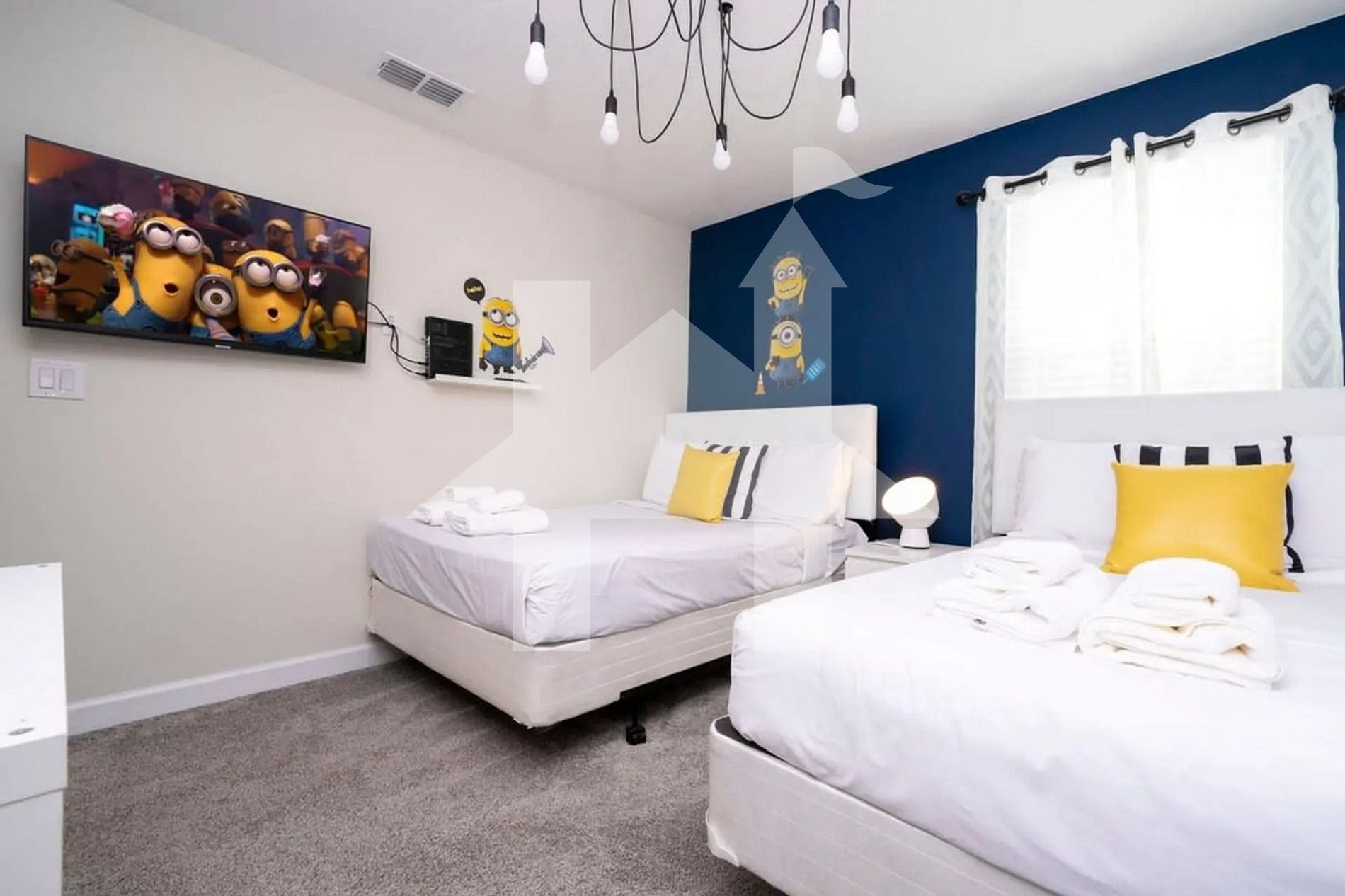 -1 Minions-themed bedroom with two Full beds – bright and playful.