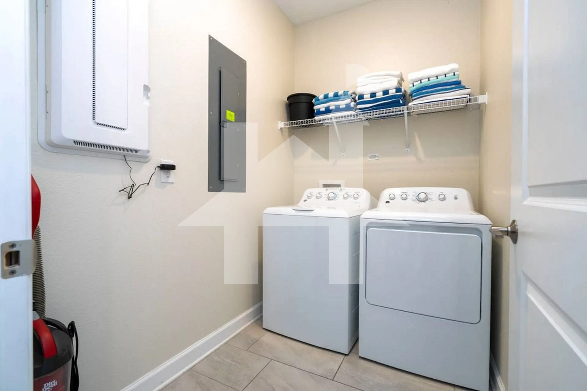 Guests have full access to the house, including all rooms, private pool, grill (for a fee), game room, and laundry. They also enjoy the amazing Storey Lake Resort amenities: pools, lazy river, gym, mini-golf, tiki bar, and more.