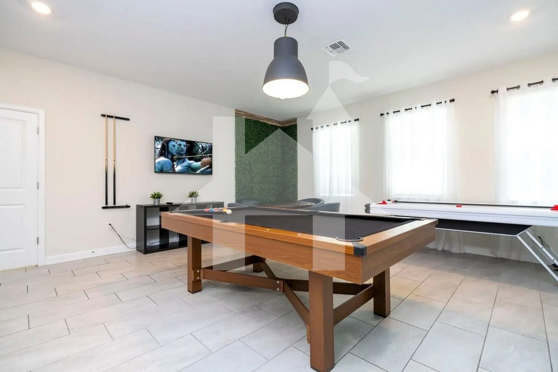 Guests have full access to the house, including all rooms, private pool, grill (for a fee), game room, and laundry. They also enjoy the amazing Storey Lake Resort amenities: pools, lazy river, gym, mini-golf, tiki bar, and more.