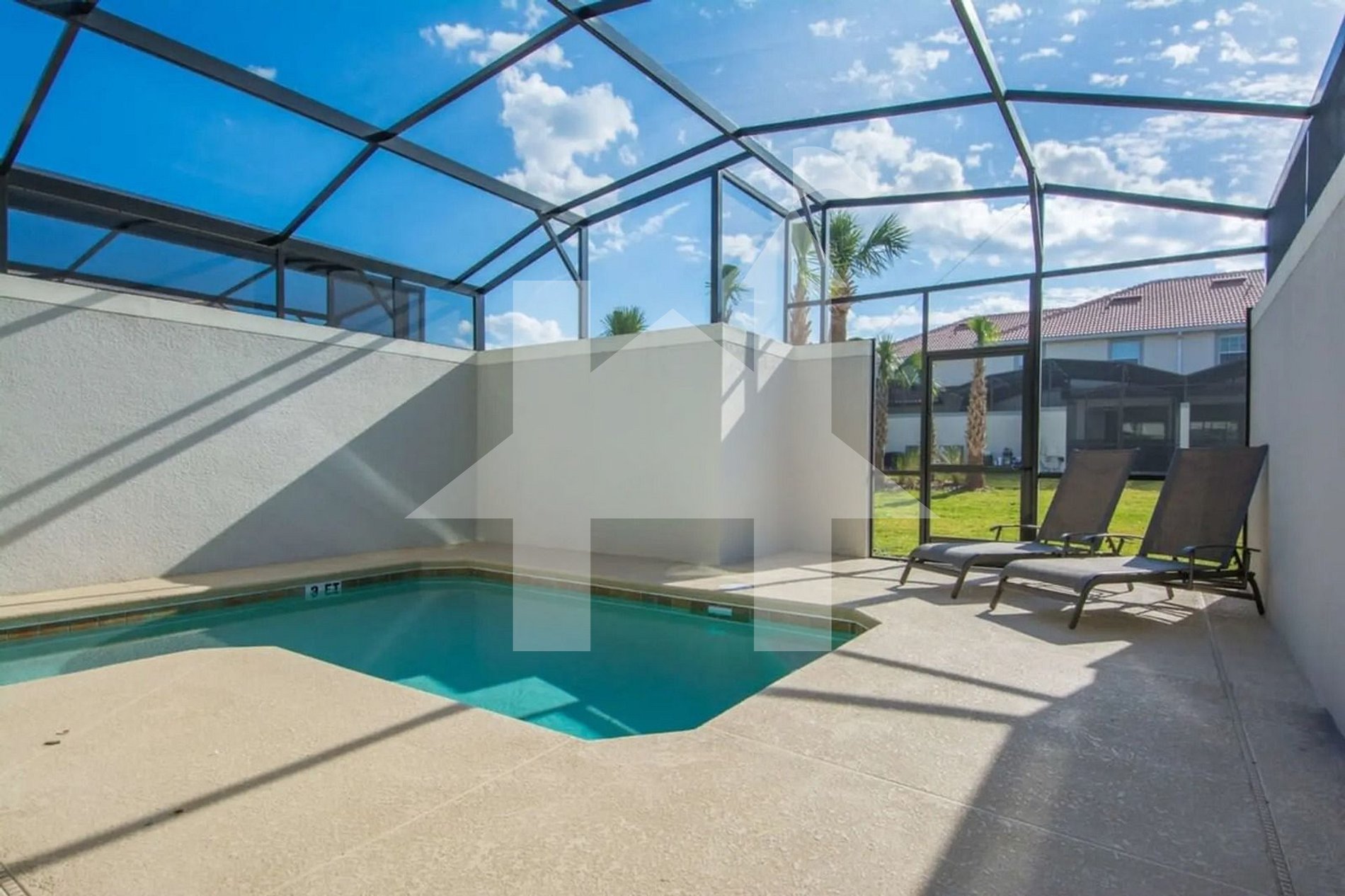 Step outside to your private screened patio with a heatable pool—perfect for refreshing morning swims or unwinding after a magical day at the parks. The pool area provides both privacy and comfort, and heating is available upon request.