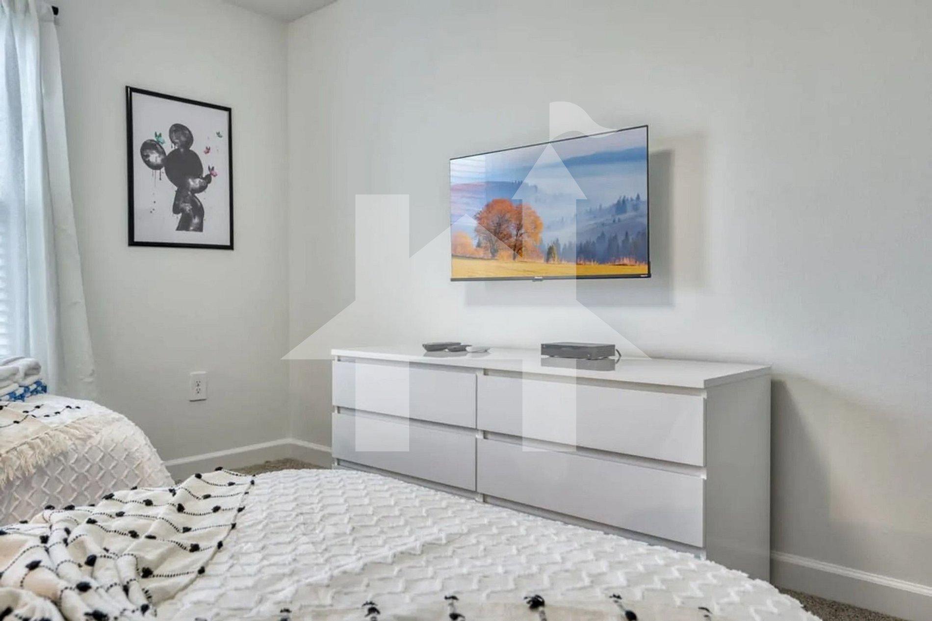 -Mickey-themed room: 1 full bed + 1 twin bed.