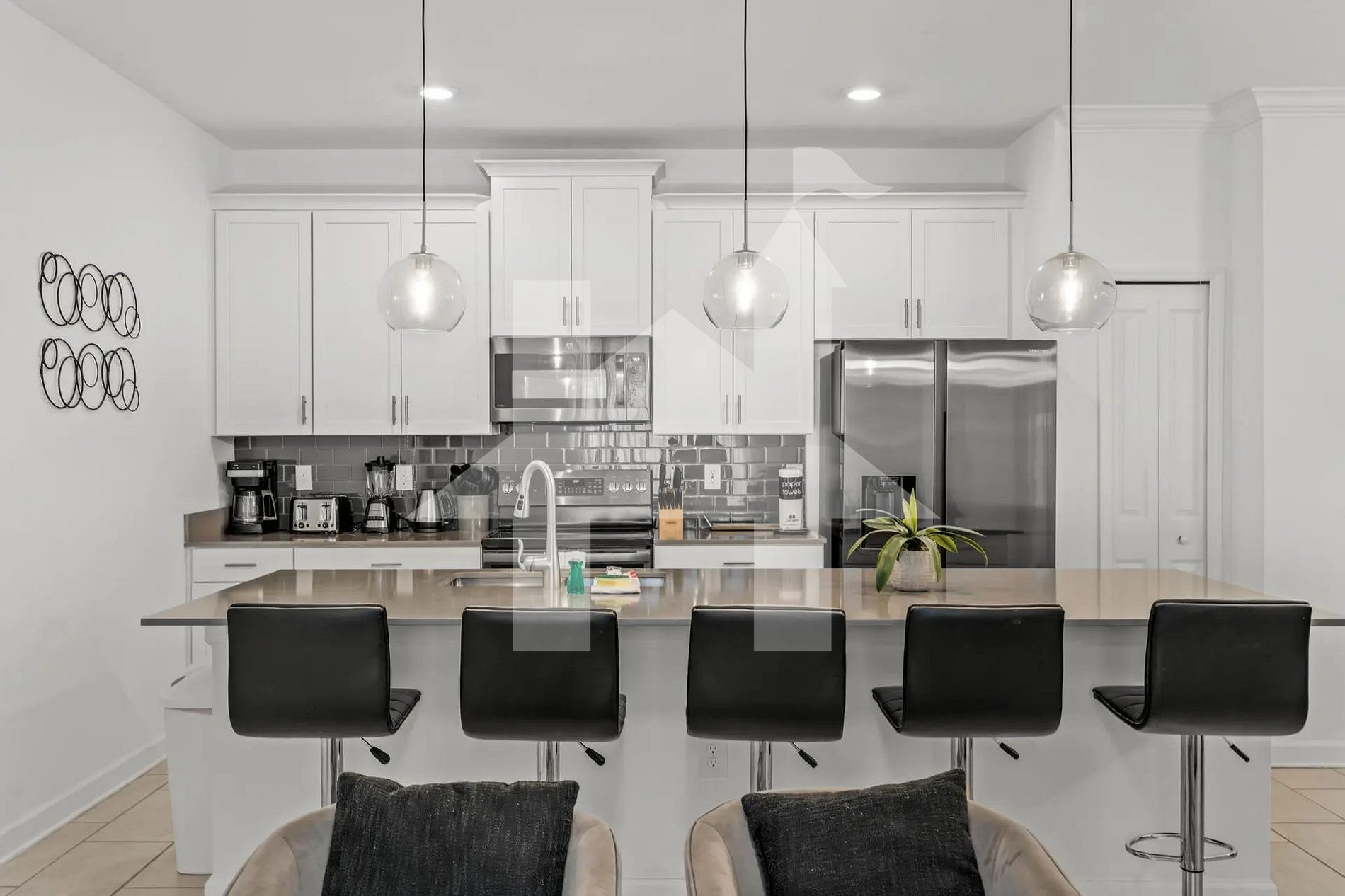 Fully equipped kitchen with modern appliances (coffee maker, blender, toaster, cookware, and more)