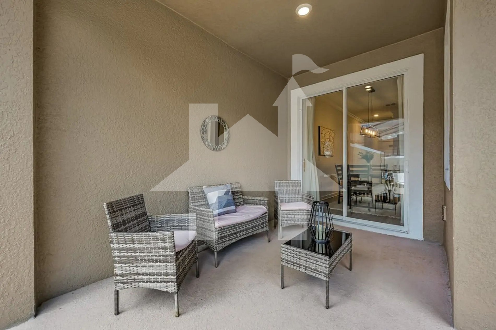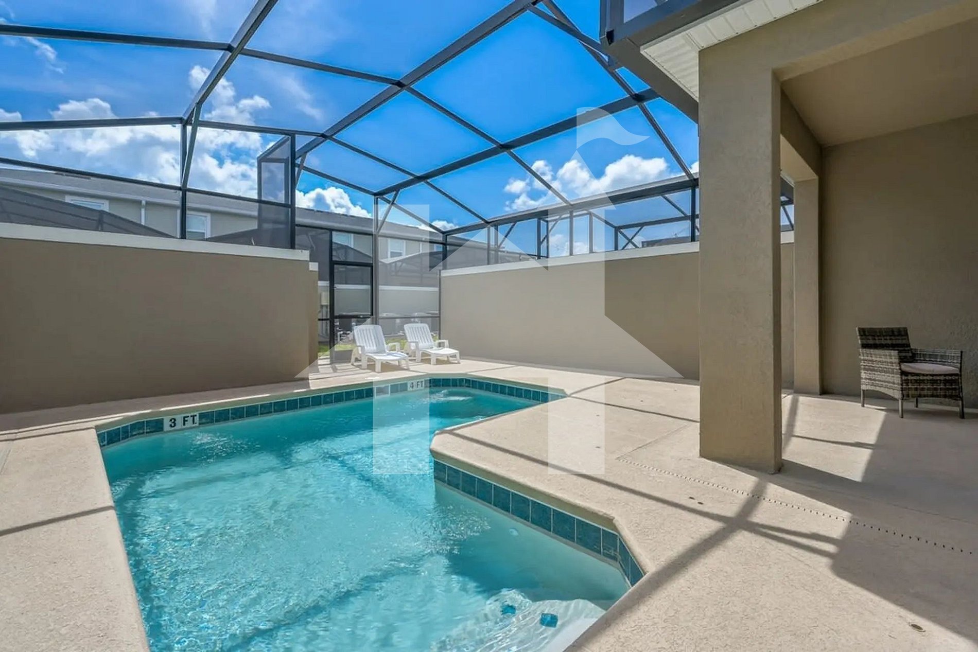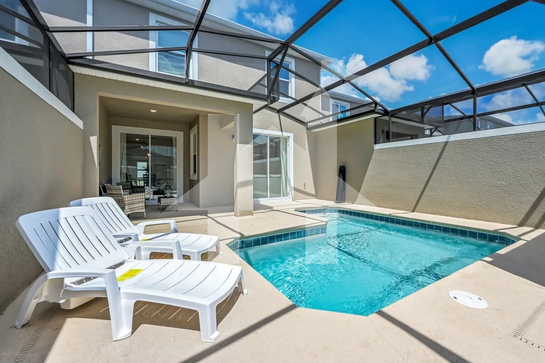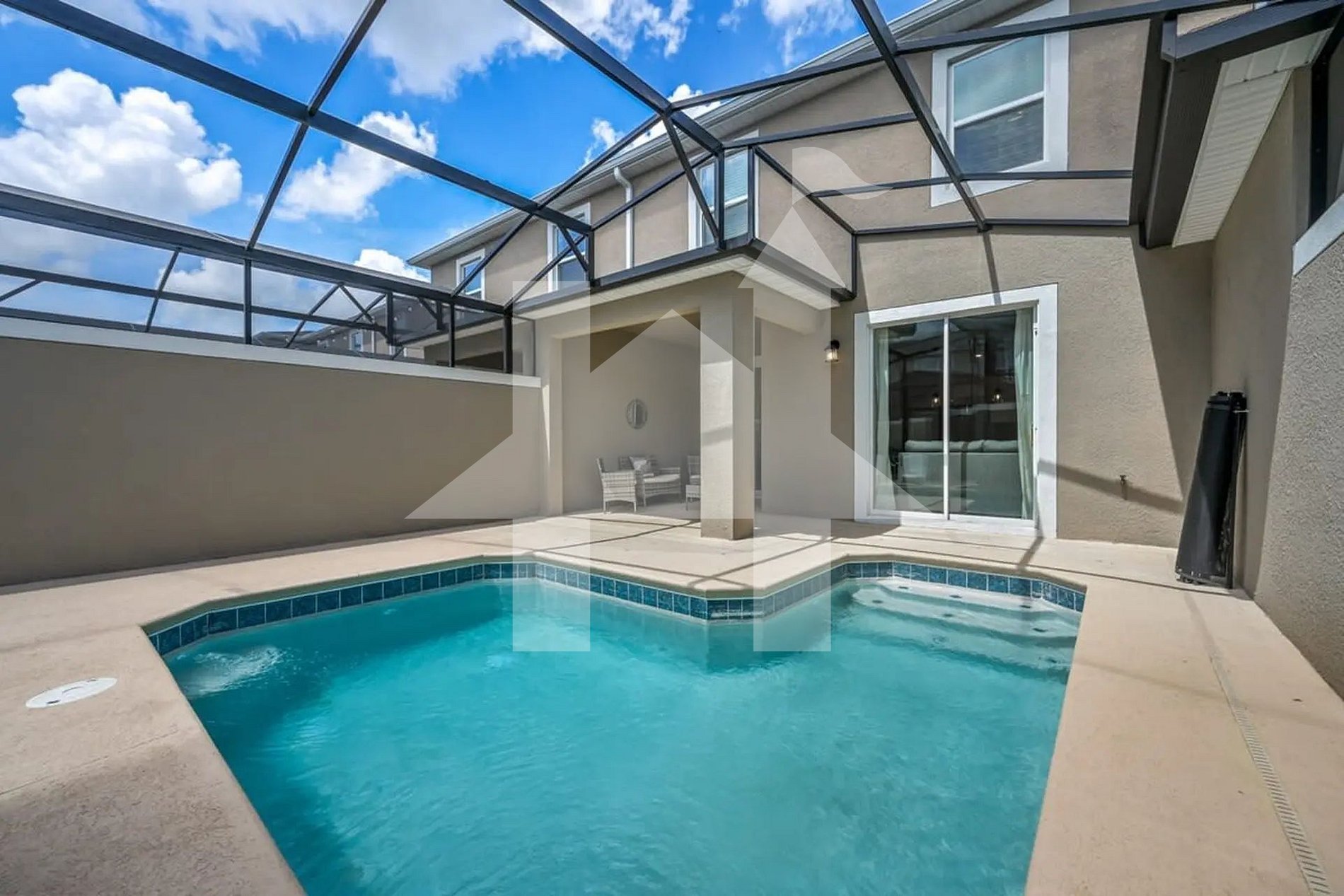 Outside, the highlight is your private patio with a heatable pool. Imagine unwinding here after a long day at the parks — under the Florida sky, maybe with music playing, enjoying a BBQ (available upon request), or simply soaking up the sun. This outdoor space offers peace and privacy whenever you need it.